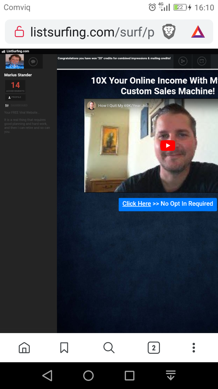 So as yesterday I do not have a video today for my #2020vision, but I have taken 4 screenshots of me clicking 4 ads in Listsurfing, this is a mailer and traffic exchange that gives good results, and clicking ads is my way of making creative pushups.