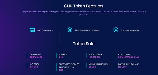 To begin with, all sales on ClikPad are processed via the Multi Smart Chain, which employs its native token, BNB, as well as TRON, MATIC, and DOT, to secure purchases. This helps to avoid the unsustainable costs that exist in the Ethereum ecosystem. In comparison to Ethereum, the advantage to utilizing Cross-chain is that it is faster, more reliable, and has lower costs, making it a better choice for both casual and experienced cryptocurrency users. To maintain safety and resolve the conflicts of liquidity pulling, ClikPad has developed a specialized platform that is available to all customers. The amount of the sale that will be provided as liquidity to Pancake Swap and ClikDEX, as well as the length of time the LP tokens will be locked, are all disclosed to buyers during a token sale.