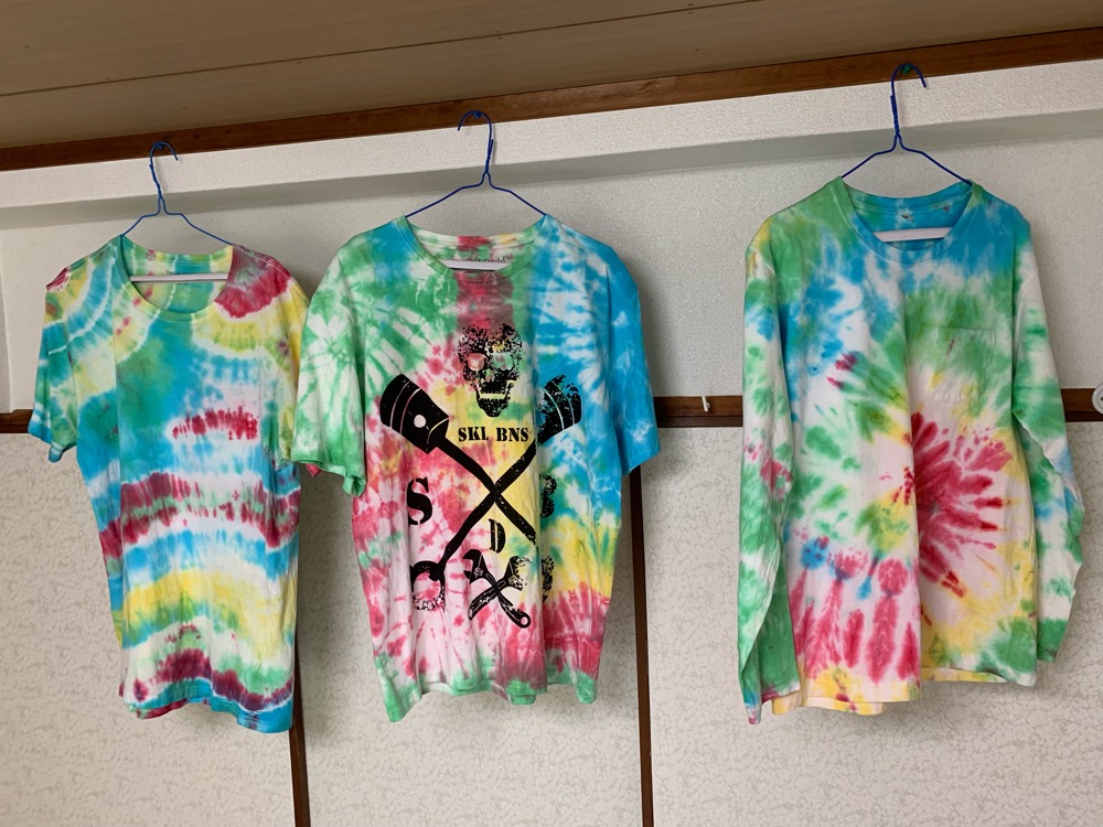 I tried my hand at tie dyeing. Here are some examples of what I produced. Mixed results, as you can see. Still, it’s easy to do and makes me feel a bit creative.