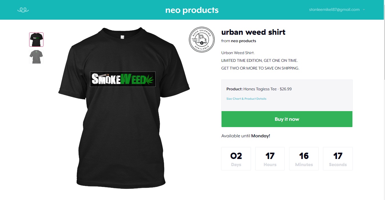 Urban Weed Shirt. LIMITED TIME EDITION, GET ONE ON TIME. GET TWO OR MORE TO SAVE ON SHIPPING.