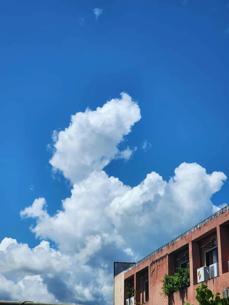 so I went outside to look for some clouds to capture. As I stepped out, I was greeted by a clear blue sky, and the clouds looked so soft and full of life. They seemed to float gracefully above, forming shapes that caught my attention. I quickly took this photo