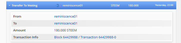 Since this month, I have powered up 531.77 STEEM to achieve the triple dolphin goal. Yesterday, I powered up 180 STEEM to reach 15k SP. Currently, I have a balance of 15,058 SP. My power history is shown in the screenshot below.