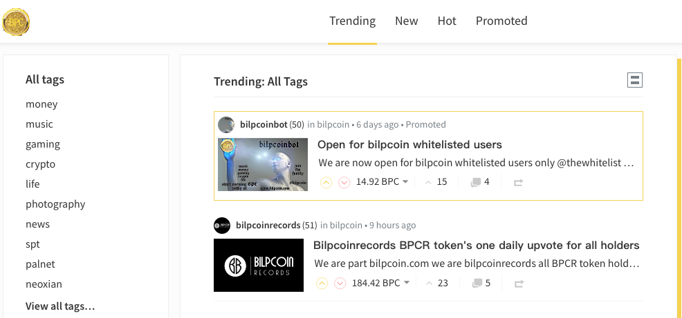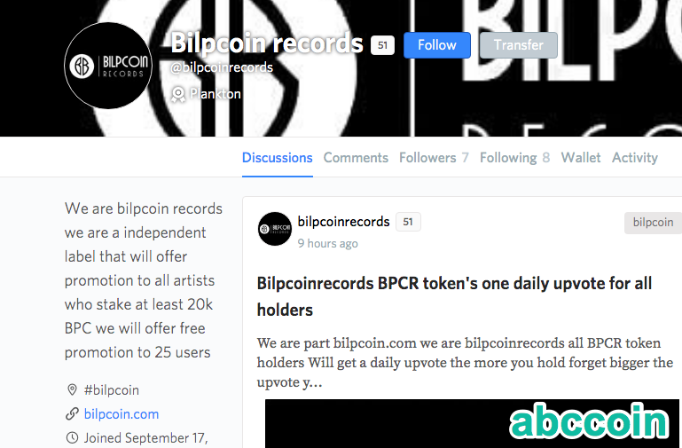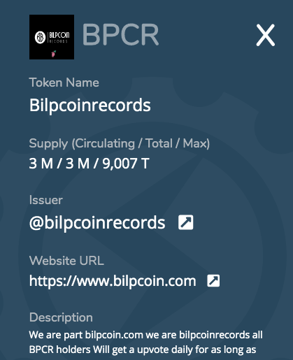 DescriptionWe are part bilpcoin.com we are bilpcoinrecords all BPCR holders Will get a upvote daily for as long as they hold the token our goal is to reward music creators and we are currently working on our first project called bilped out it's a project that will feature artists from all over the world back to the token all holders will get a daily upvote we will power up all sales to we reach one million steempower then we will activate staking for bigger upvotes many more updates and uses for the coin will be available in the future our first mission powering up one million steempower