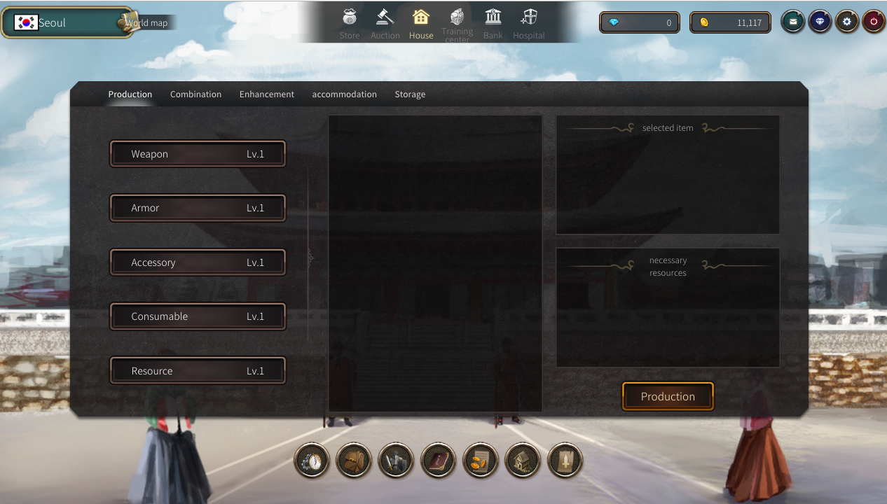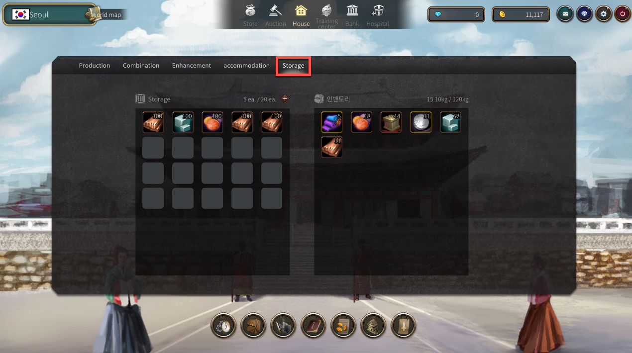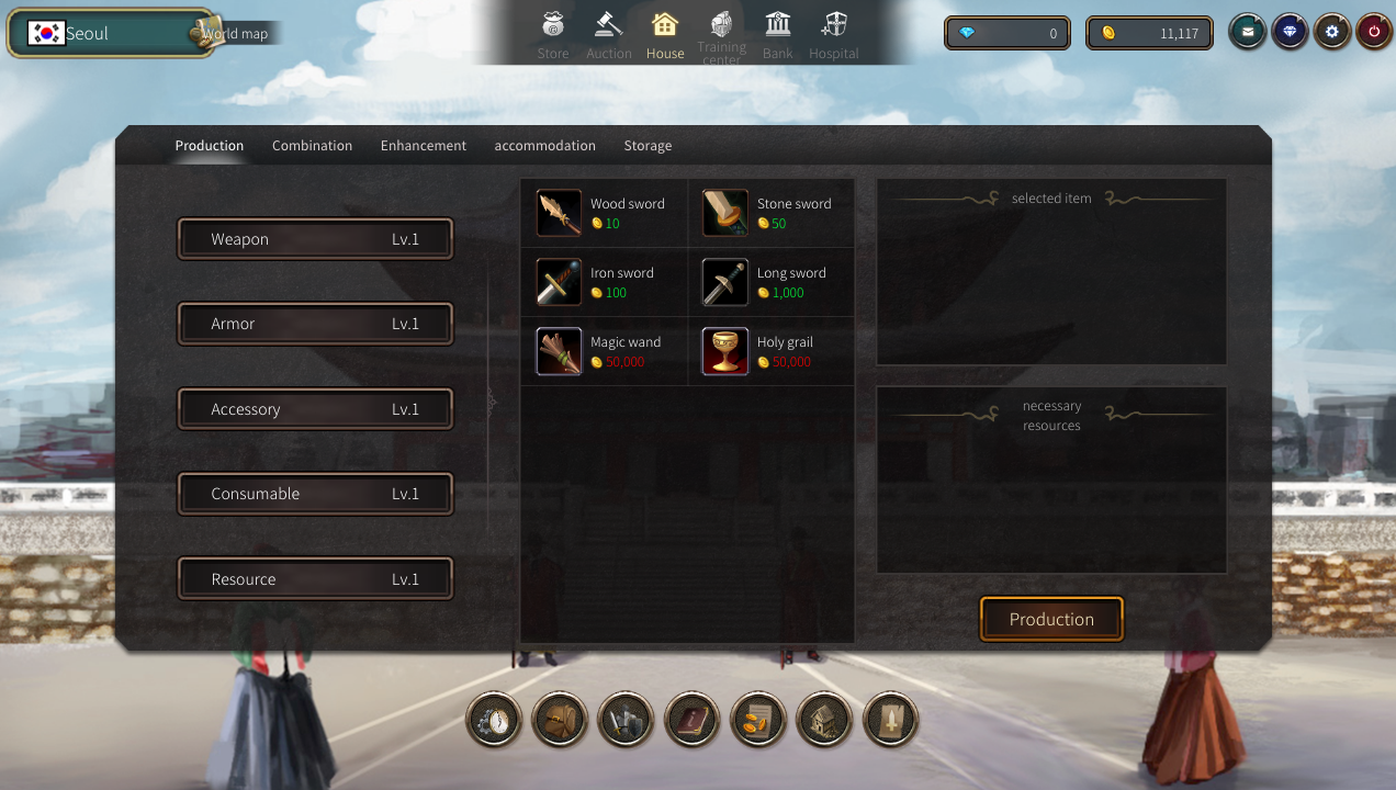 采集了几天的丝绸,终于筹集了20000个金币,有足够的钱买房子了。兴冲冲的回到Seoul,点开城镇中心,发现房子便宜了,买房子只需要10000金币了。估计是项目方发现原先的定价太高,调低了。