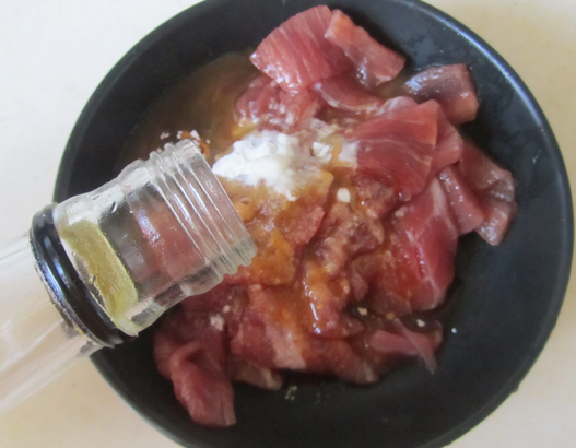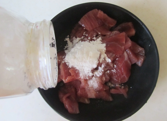 2.牛肉中加入適量的鹽、澱粉;