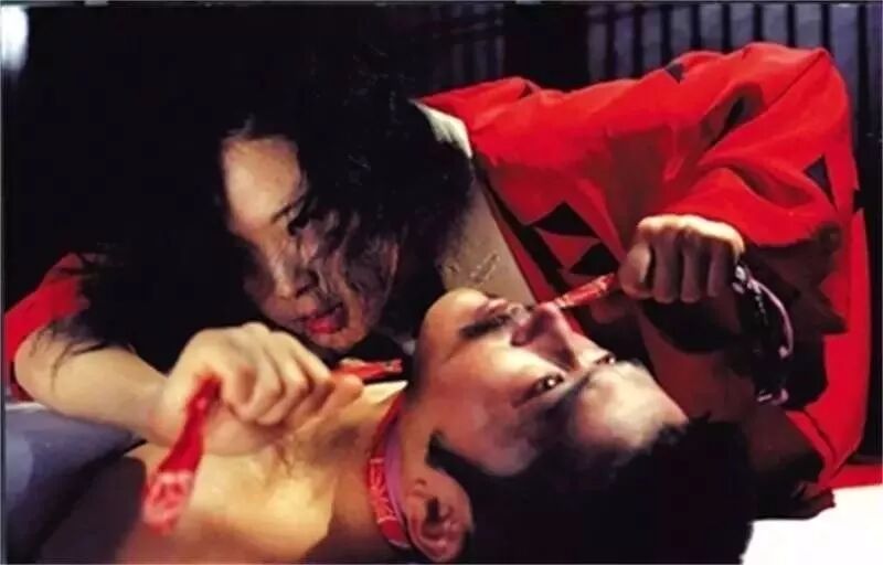 所以最后,一席红衣的阿部定用红布勒在吉藏的脖子上。