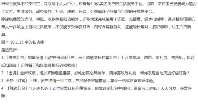 今日支付宝又迎来了一次新的更新,升级到v10.1.15就可以享受到多重红包豪礼。据了解,商家可以通过推广商家收钱码和红包码,就能获取大红包,最高的红包奖励是888元。