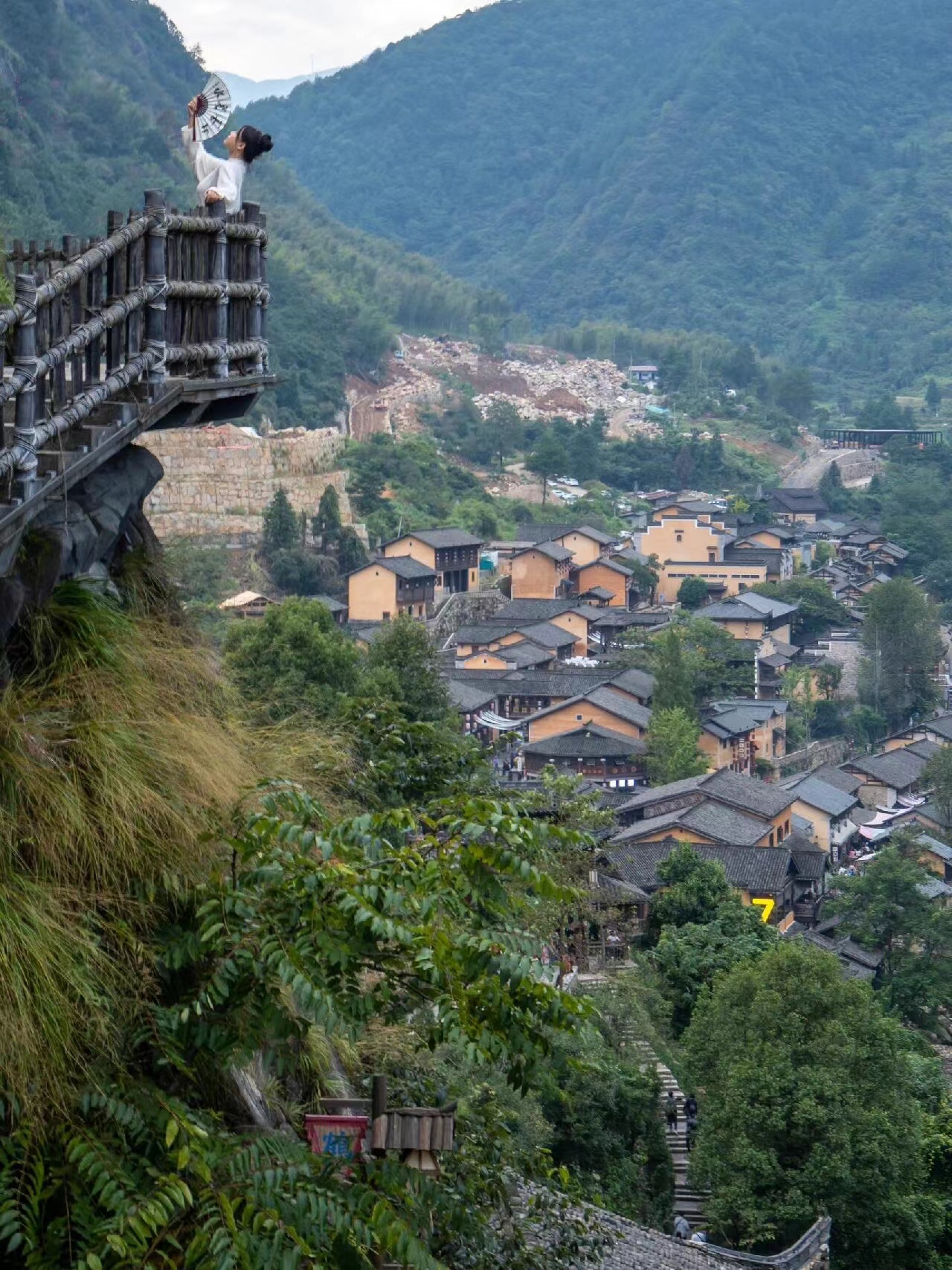 站在栈道或是观景台便可以俯瞰这座山谷里的神仙村落,不仅出片而且视野非常开阔。
