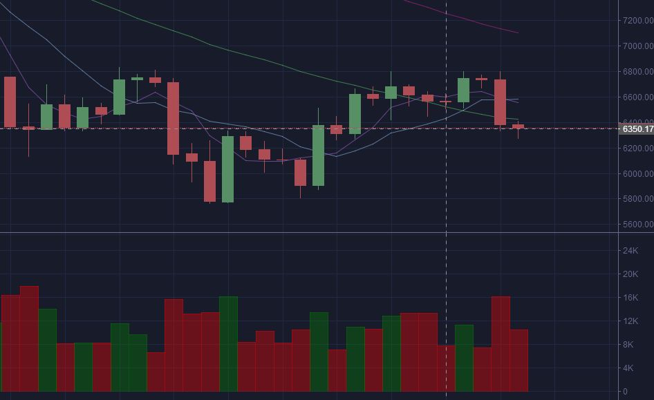 BTC:今天全天在6350一线震荡,6350正好是BTC短周期生命线,守住6350,等EOS一类的小币种恐慌结束,短周期就会继续反弹,所以,这一线不容有失,一旦失守,下档支撑6200一线,那么市场将进入新的探底过程,目前市场较弱,空方站明显优势。