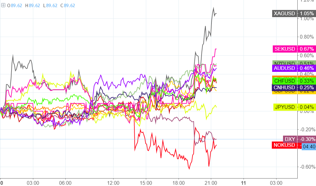 同时,欧洲央行出来抢了一把镜,在贸易摩擦之后,投资者的焦点可能要再度回到央行政策上,欧洲央行今日表示将跟随美联储的政策,欧元在晚些时候一波上涨,并带动了其他的欧日货币一起上涨,美元指数出现下跌,黄金和白银也因此走高。