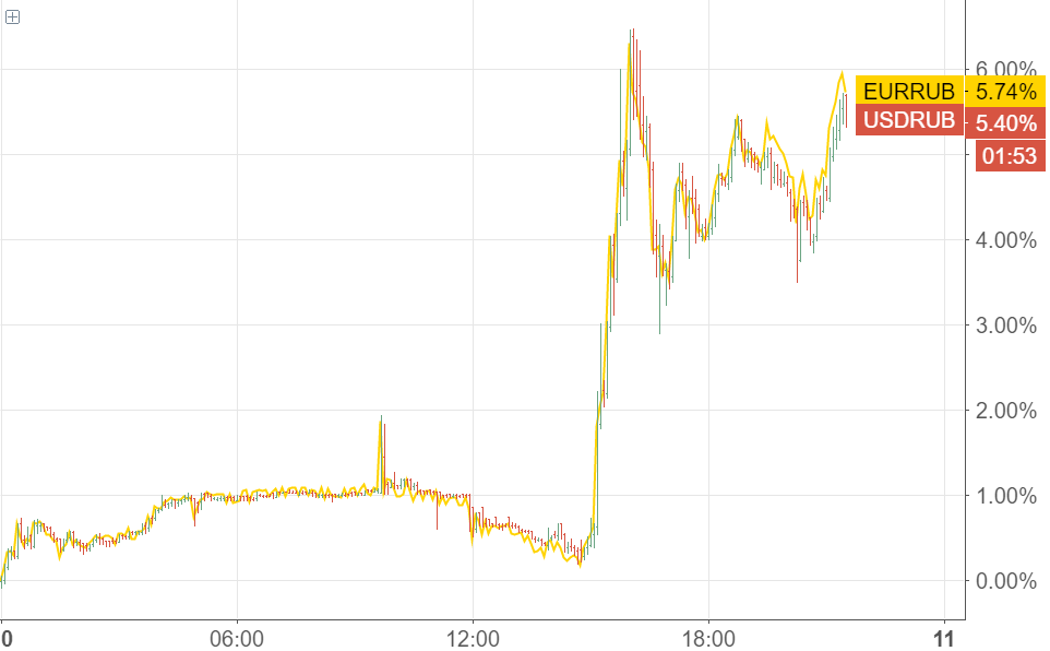 俄罗斯卢布兑美元跌超5%,逼近64关口。俄罗斯卢布兑欧元跌至78.43卢布,创2016年4月来新低。