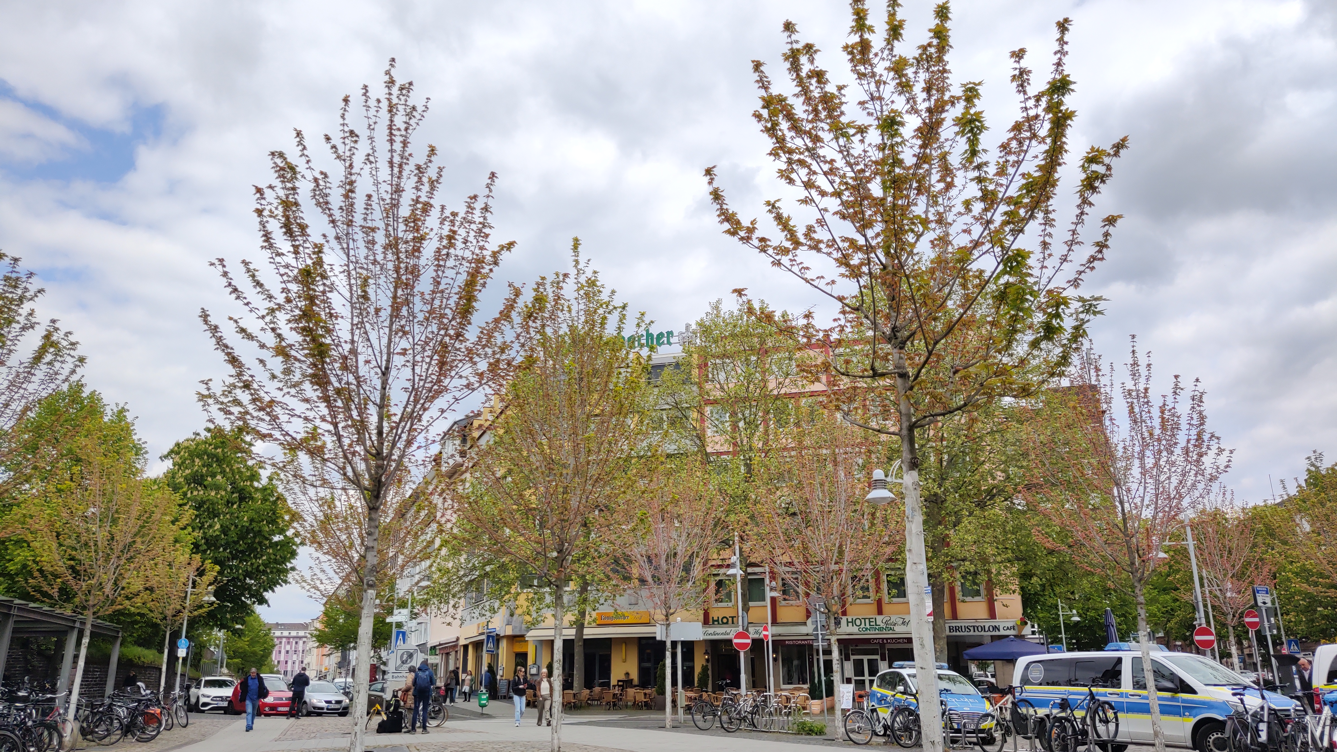 Ich sitze also vor dem Bahnhof und schaue mir den Platz an wie die Bäume anfangen zu blühen und wie alles wieder schön grün wird.