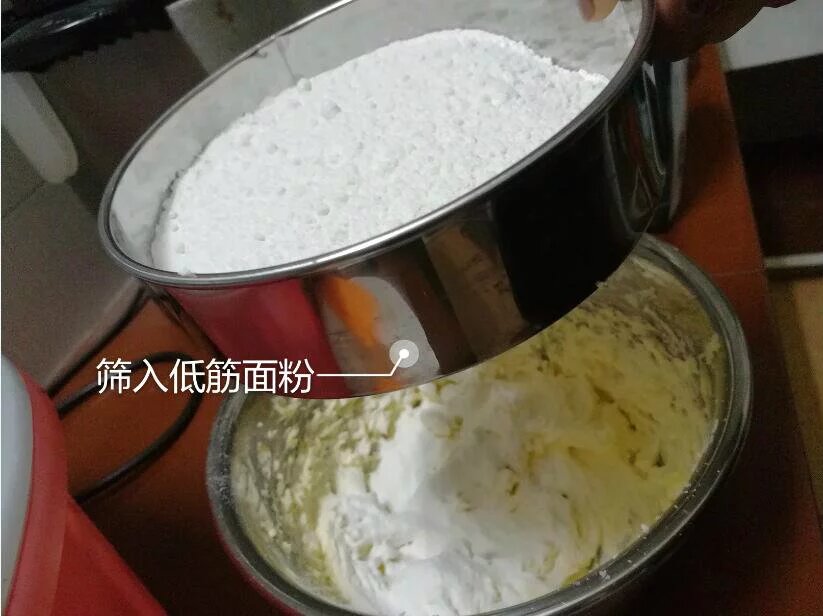 第七步:低筋面粉筛入黄油糊。