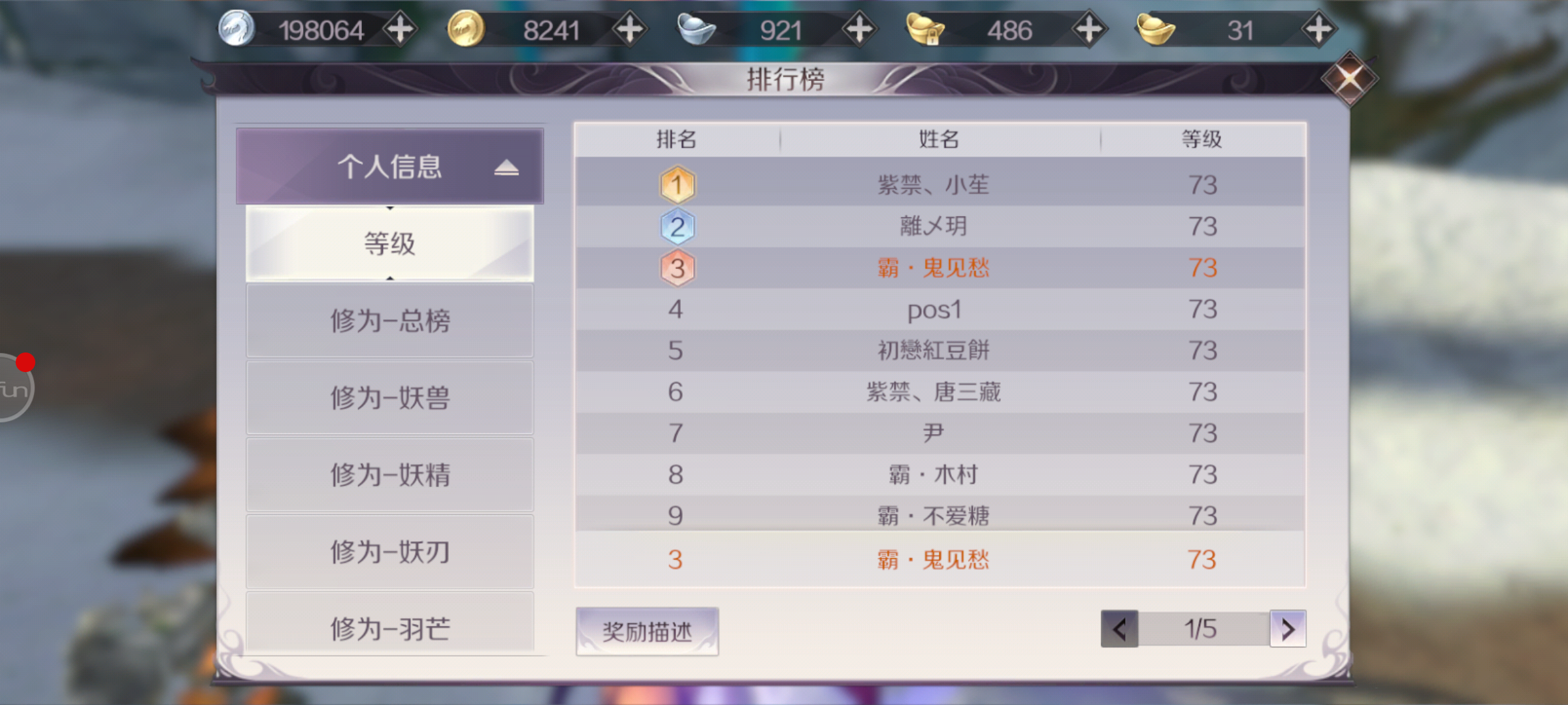 今天的我升到73等级了,73等级是今天的满级。