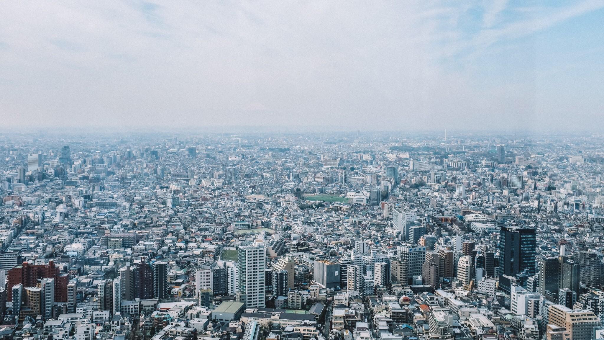 「都厅前」政府免費開放的觀景平臺,富士山在一片水汽中隱藏了身影