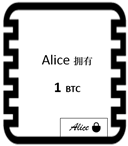 转账前,Alice要事先准备1个比特币。为了方便理解,我们把Alice准备转出的这1个比特币看成一张面额为1个比特币的“支票”,如图1。