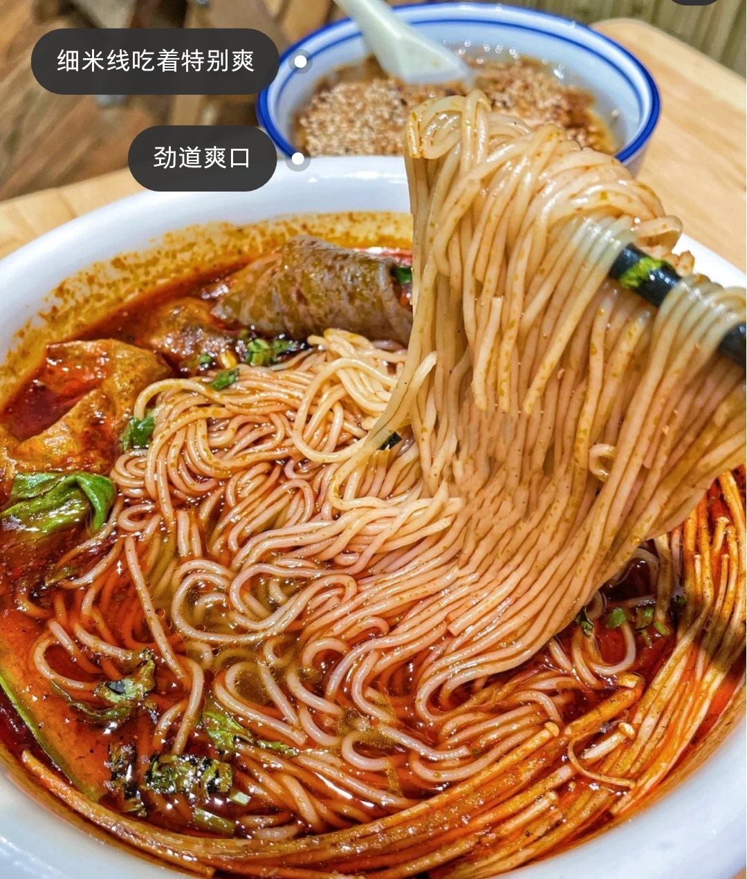 米线是我最爱吃的细米线,Q弹劲道,很有嚼劲,泡久了还有点黏黏的口感!