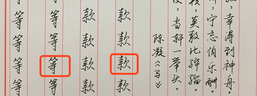 【硬笔书法钢笔字一百零七、一百零八弹】—— 等、款