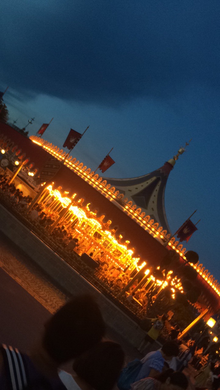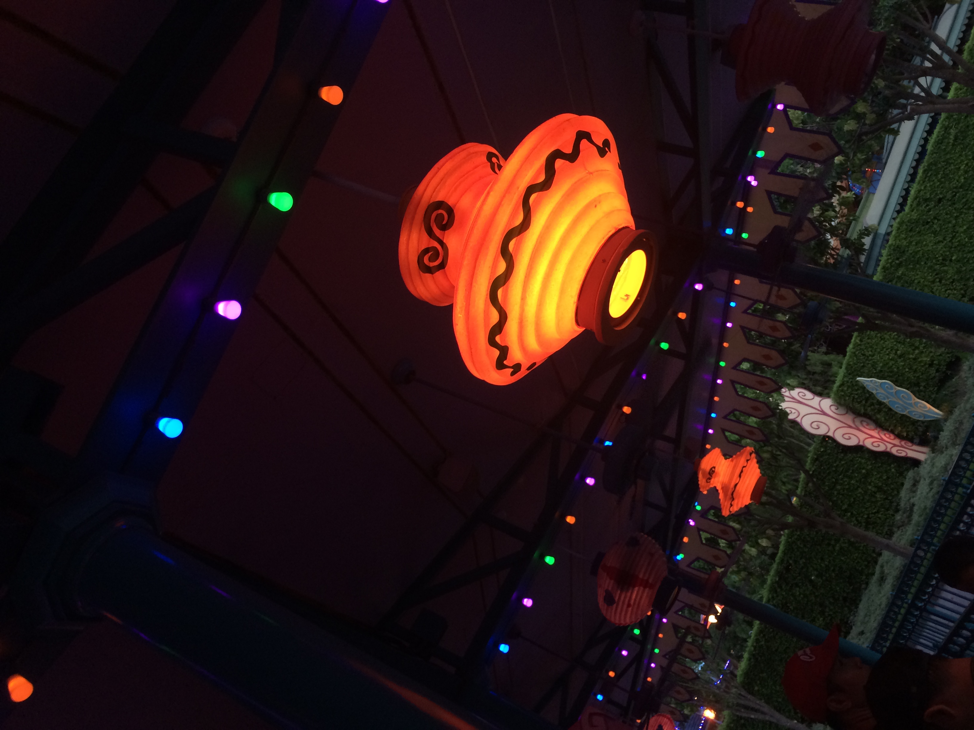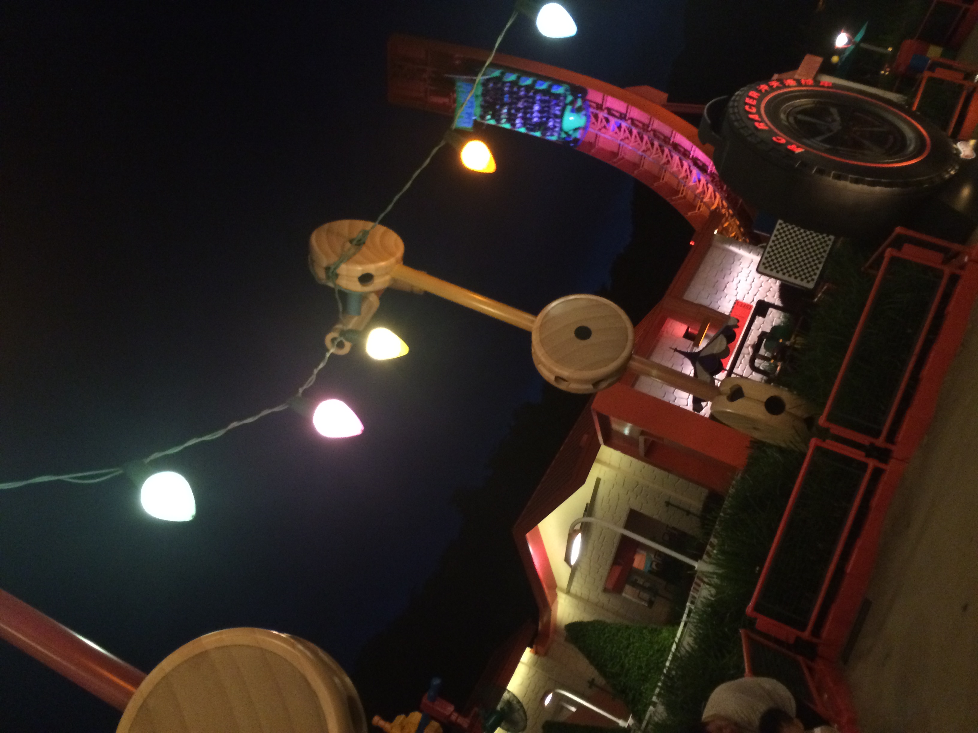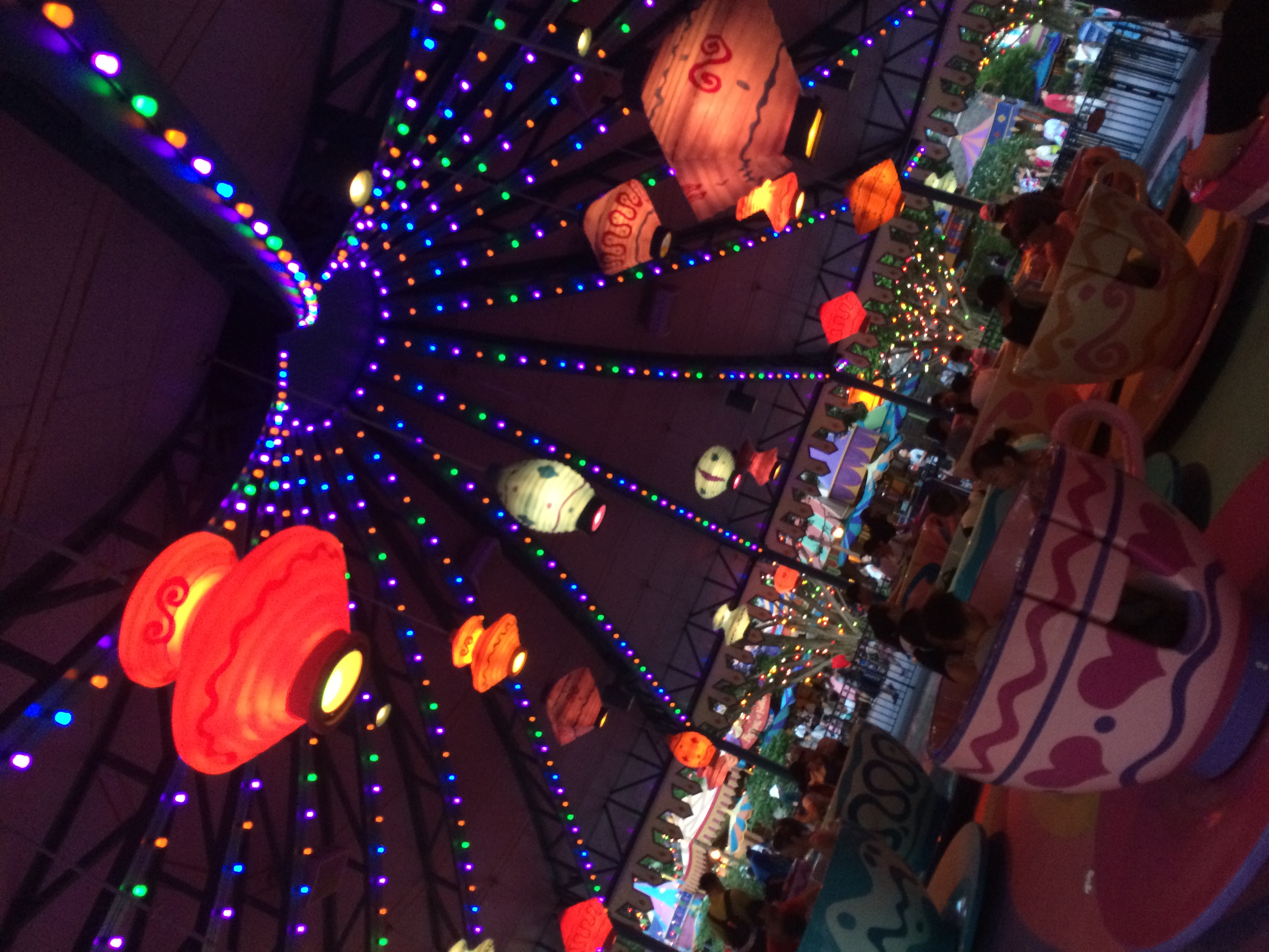 之后去了玩咖啡杯。来一个天地转吧。晚上的灰姑娘旋转木马原来也很漂亮,坐上去就彷如成为了王子和公主。