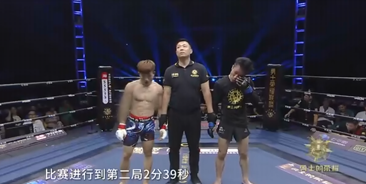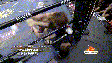 赛场几乎失控,日本选手松元仁志被尹帅打出围绳,尹帅骑在松元仁志身上重拳狂砸,在如雨点般的重拳狂轰之下、松元仁志被强势TKO。