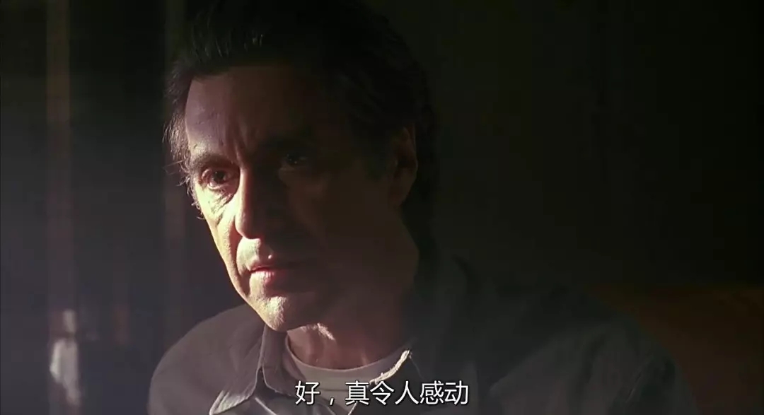 其实老男主年轻时候桀骜不驯,所以他的家人都不太喜欢他,后来又瞎了,整个就活得很没意思,这三天其实是想死来着,所以他求着小男主陪着他在纽约瞎玩,小男主因为目睹了同学的恶作剧但是因为内心的正直不肯说出是谁做的坏事,垃圾学校就威胁他“你不说你就要退学”。我可怜的小奶狗就整个很郁闷地跟着老男主去纽约了。老男主在纽约的日子棒的飞起:住纽约的顶级酒店,乘加长林肯,订做新礼服,吃自己喜爱的美食,和一位素不相识的妙龄女郎在酒店里的众目睽睽之下大跳探戈,在闹市里开着法拉利疯狂飙车。因为觉得自己要死了,所以就各种无拘无束。第三天的早晨,老男主穿上军装想要解决掉自己,被小男主救了一命,其实这一段是全剧最有情节冲突的地方,可是我写不出那个激动人心的场景,反正是看的我鱼丸都忘记吃了。这会儿,他们应该是有感情了,所以后来老男主就去小男主学校一番慷概激昂的据理力争,为小男主摆脱麻烦。其实就是你救我于残烛之年,我护你于纷扰之中。