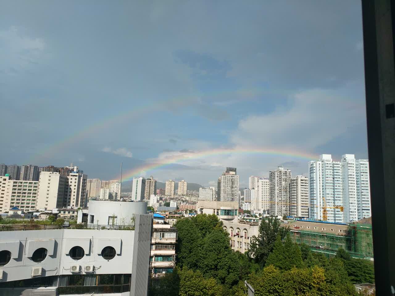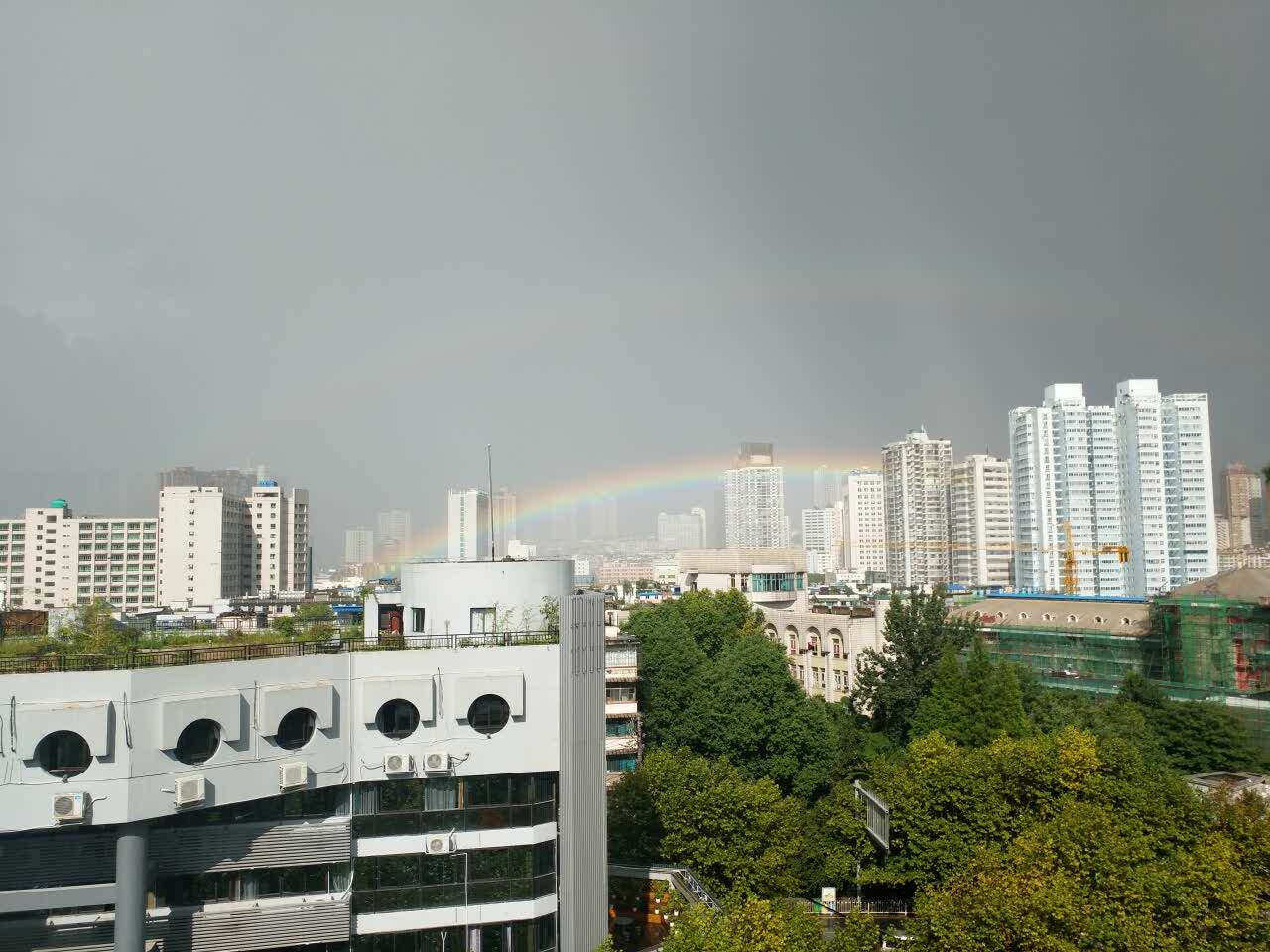以前,总是觉得她那么的遥远,因为听见很多人说过彩虹有多么的美,但是就是未曾亲眼看见过。前不久的一场雨却让我目睹了这一切 雨后的彩虹,只是可惜的是,我没有照相机,要不然我想还能怕得更加的美丽。