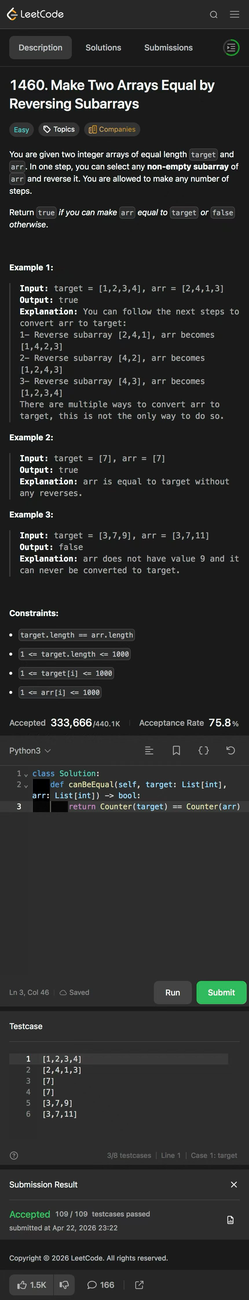 带娃刷题第437天 反转子数组使相等ericandryan (78)in #cn • 3 days ago #leetcode #tutorial #programming #coding #study #daily #learning