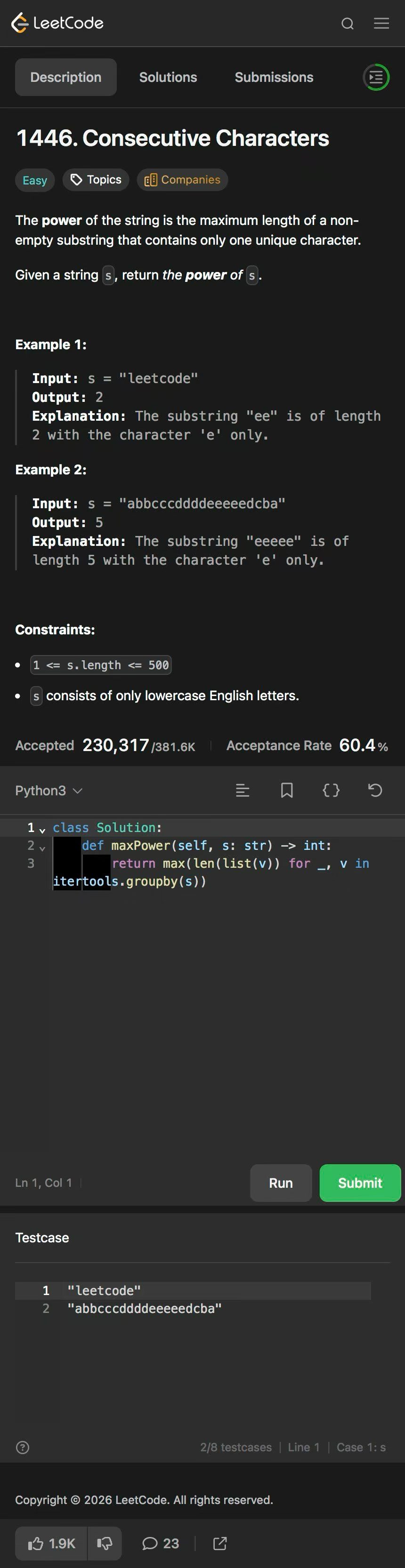 带娃刷题第439天 连续字符ericandryan (78)in #cn • yesterday #leetcode #tutorial #programming #coding #algorithms #math #learning