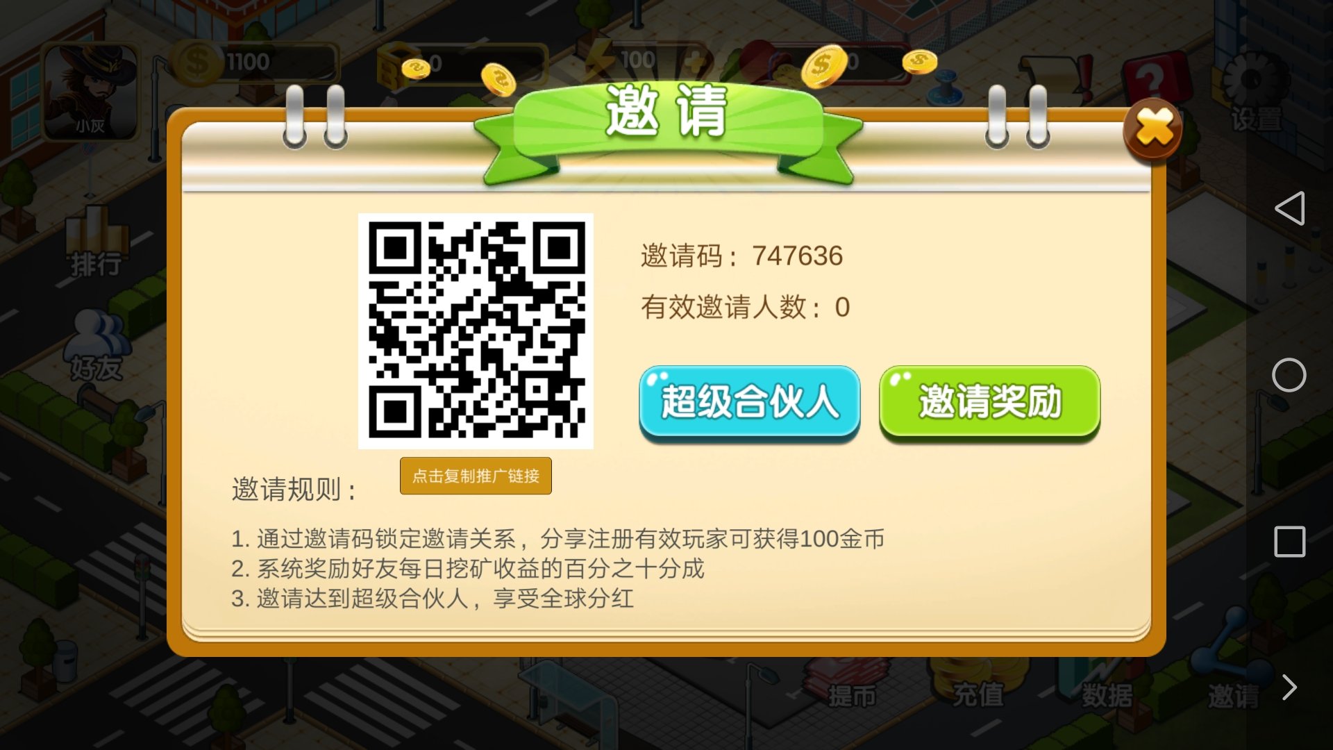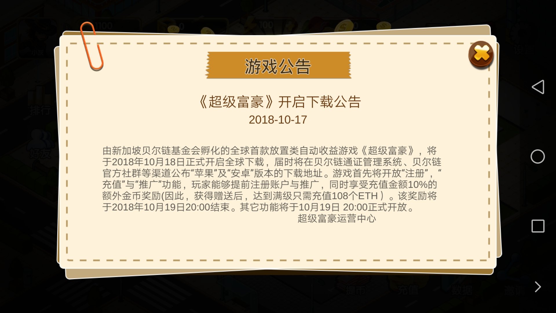全球首款自动收益的区块链手游,新用户注册送一个店铺和1100金币。