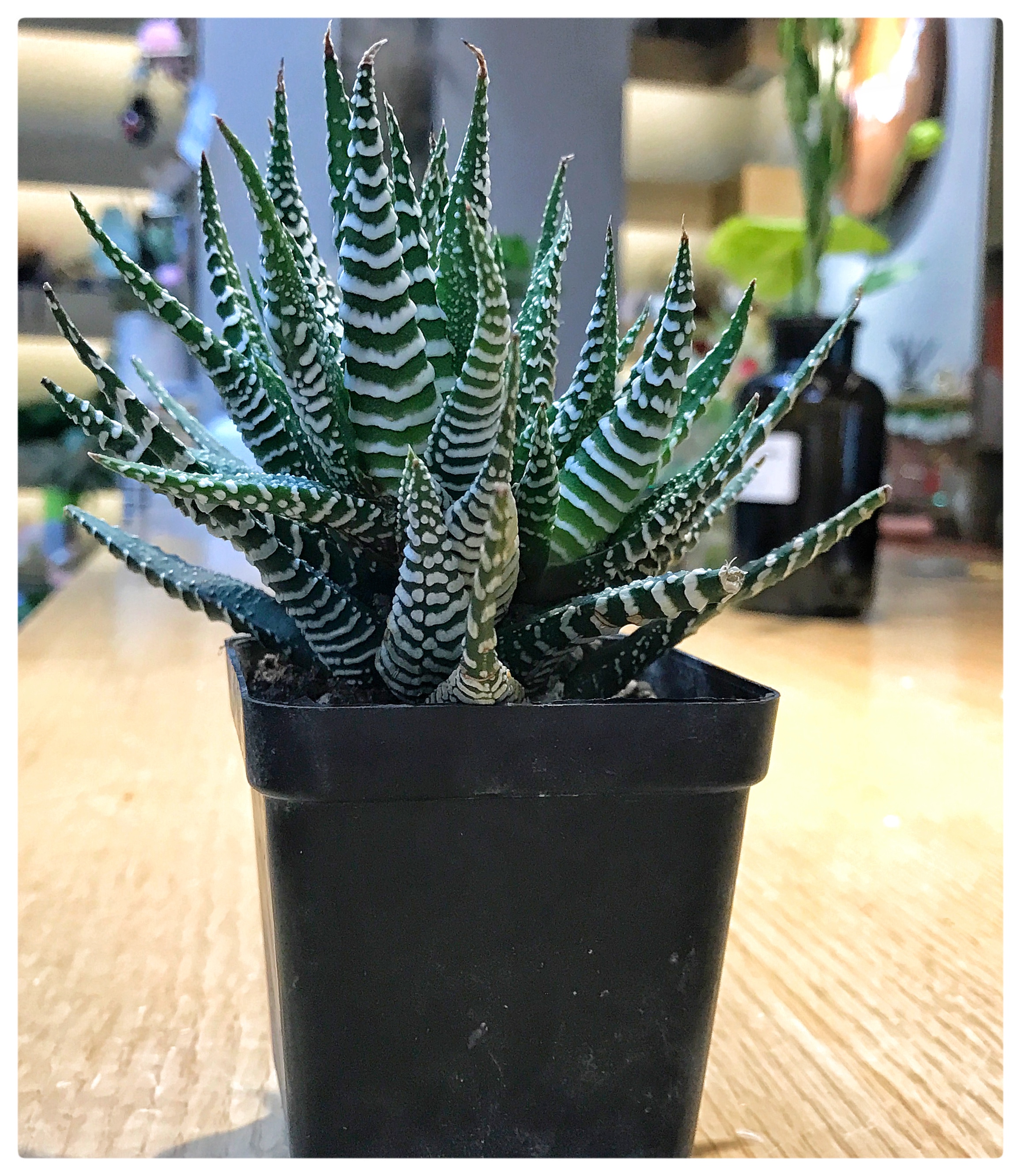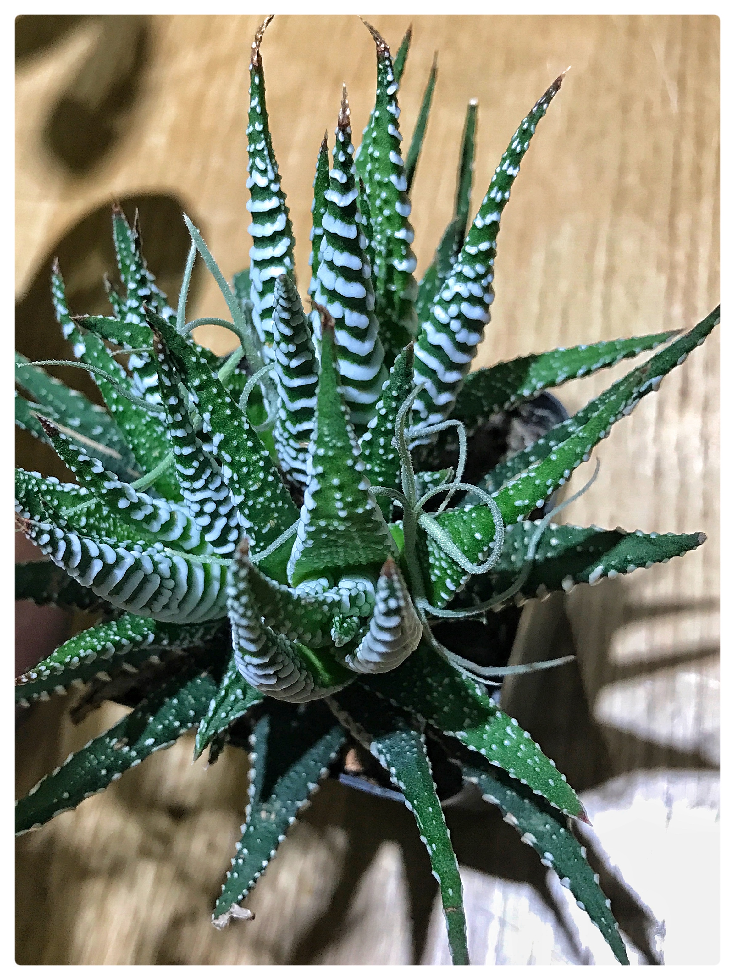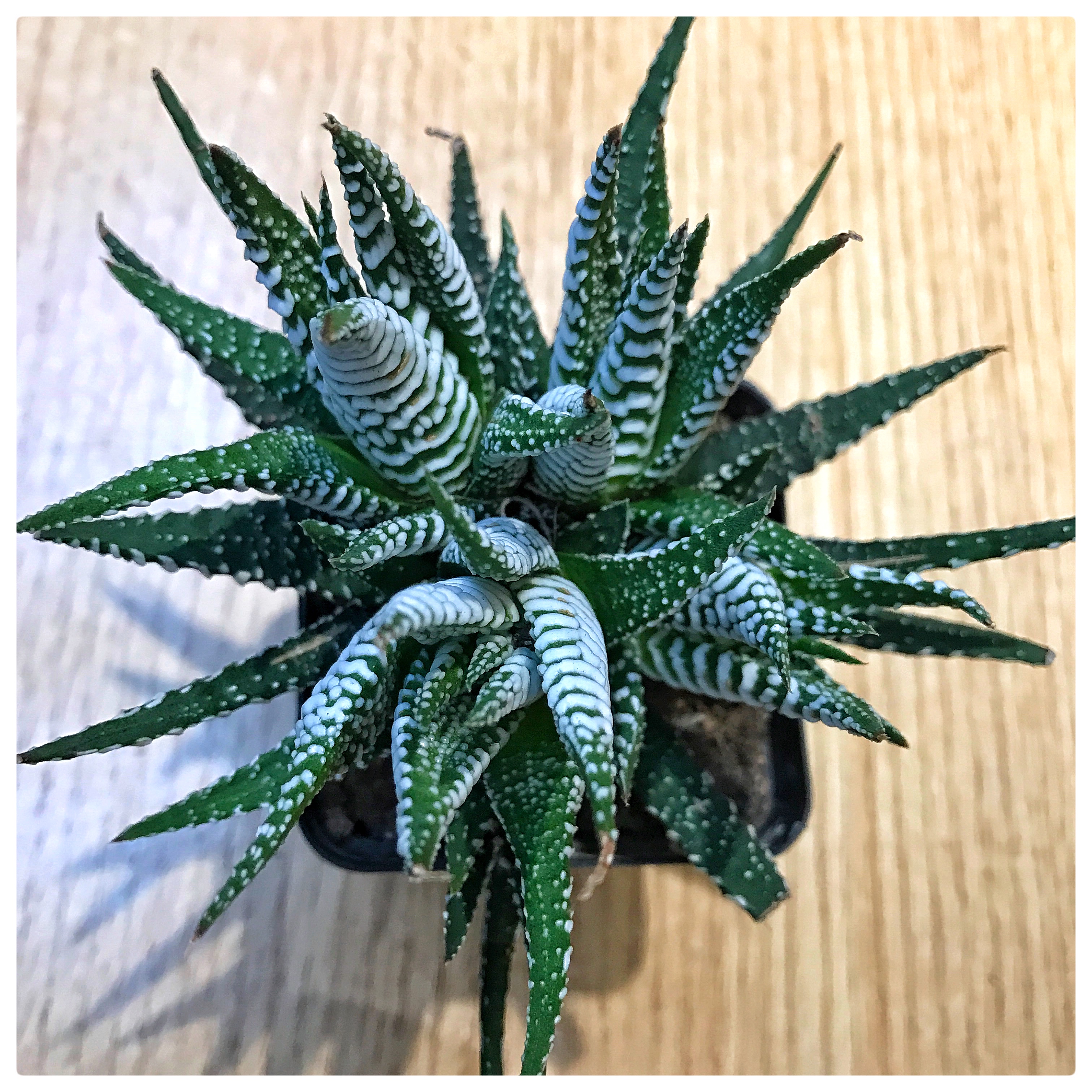 条纹十二卷ffcrossculture (71)in #cn • 8 years ago 条纹十二卷又叫条纹蛇尾兰,多年生肉质草本植物,叶片紧密轮生,呈莲座状。叶三角形披针状,先端锐尖。叶表光滑,深绿色,叶背绿色,有白色带状突起。这些横向排列的白色条纹,与叶面深绿色形成强烈对比。 条纹十二卷品种极多,常见的是这种绿白相嵌的小型多肉植物,清新高雅。亦会开绿白色小花,若配以精美的盆钵用来装点案几会给人一种充满生机的感觉。 #photography #flower