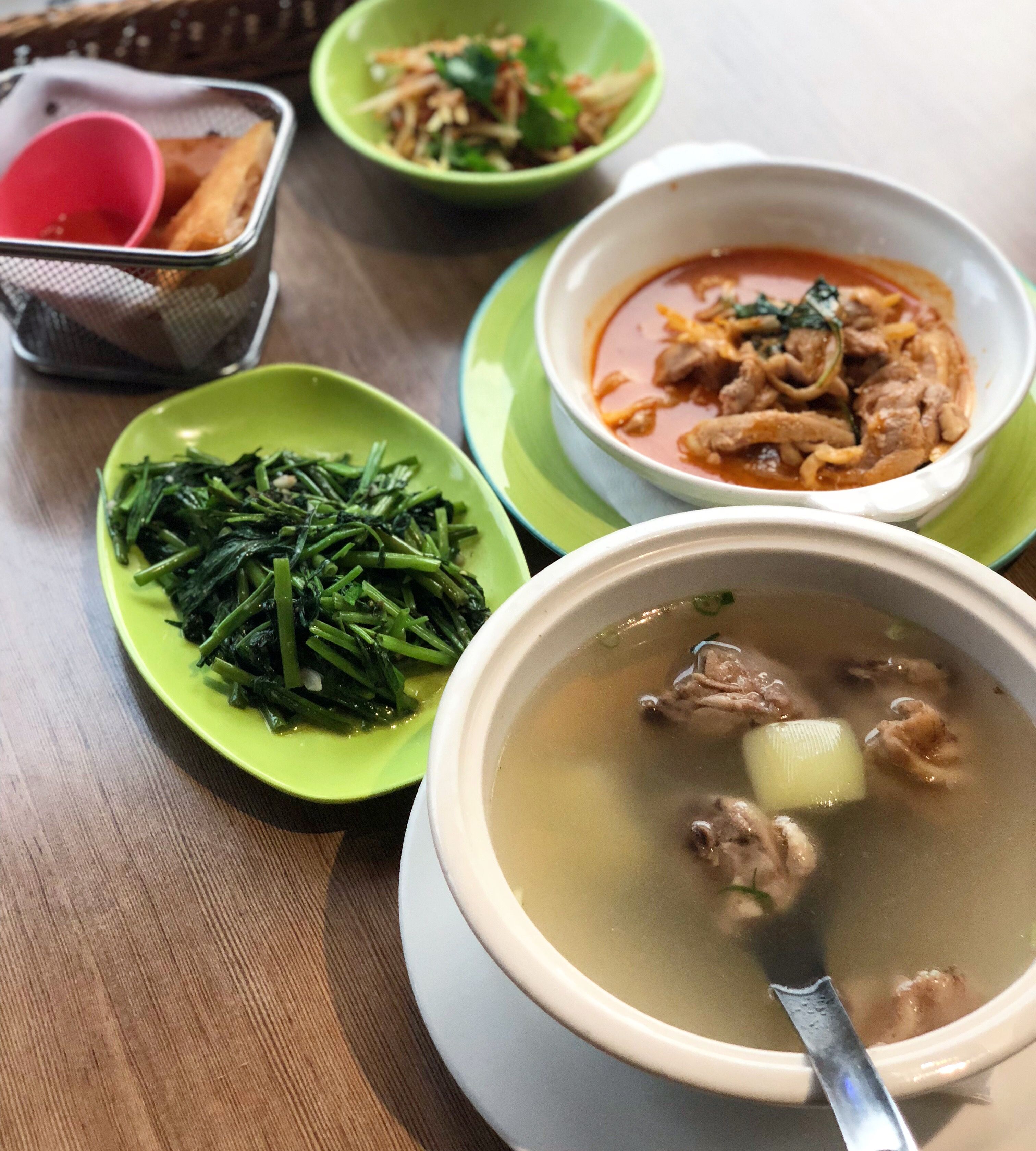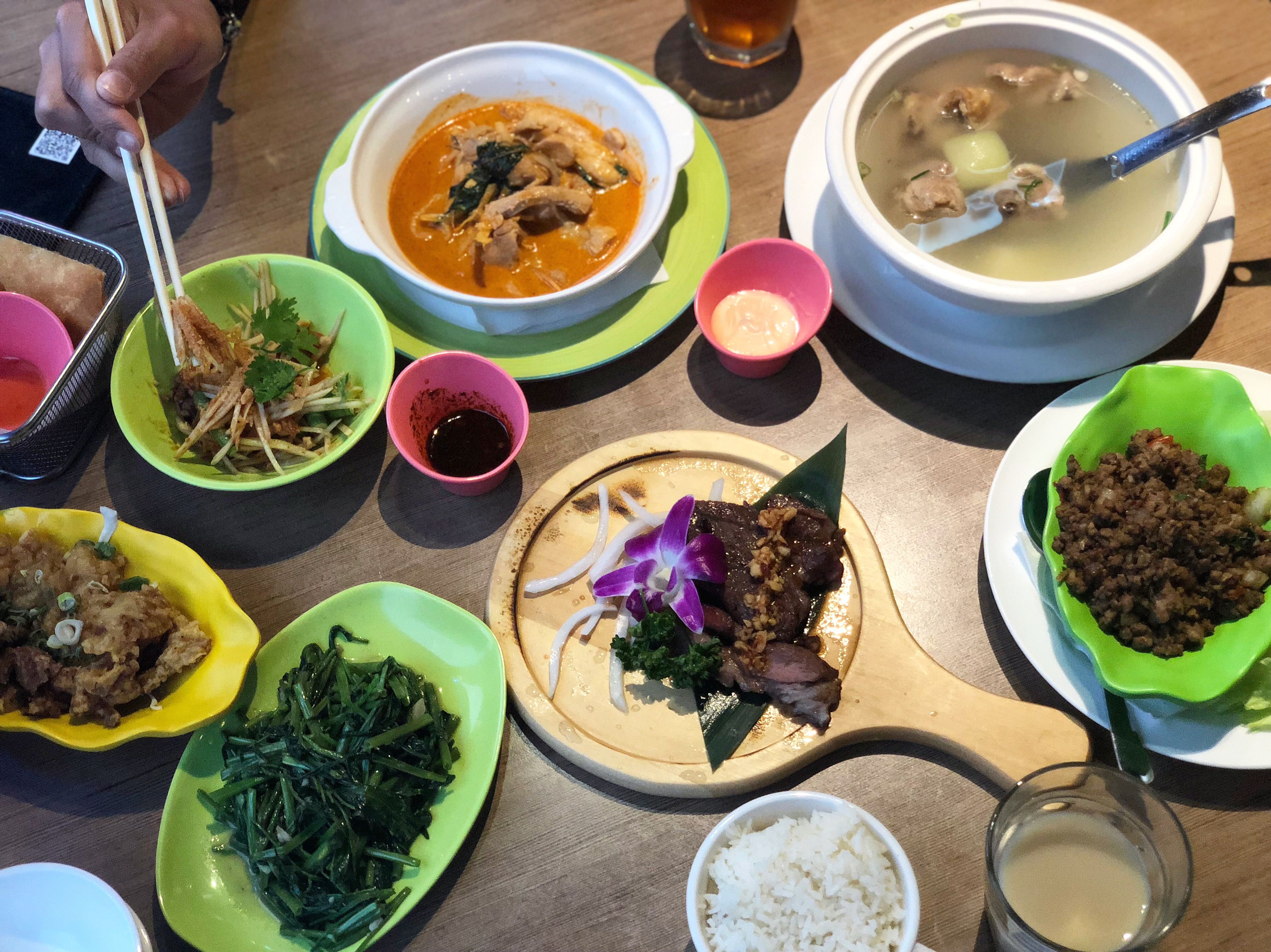 Green Papaya Salad, Fried Shrimp Cake, Crispy Chicken, vegetables and more!