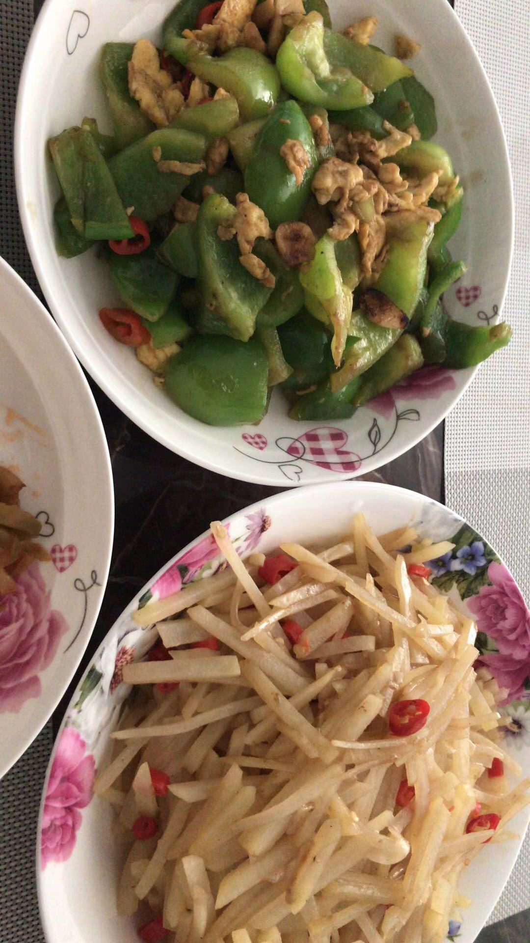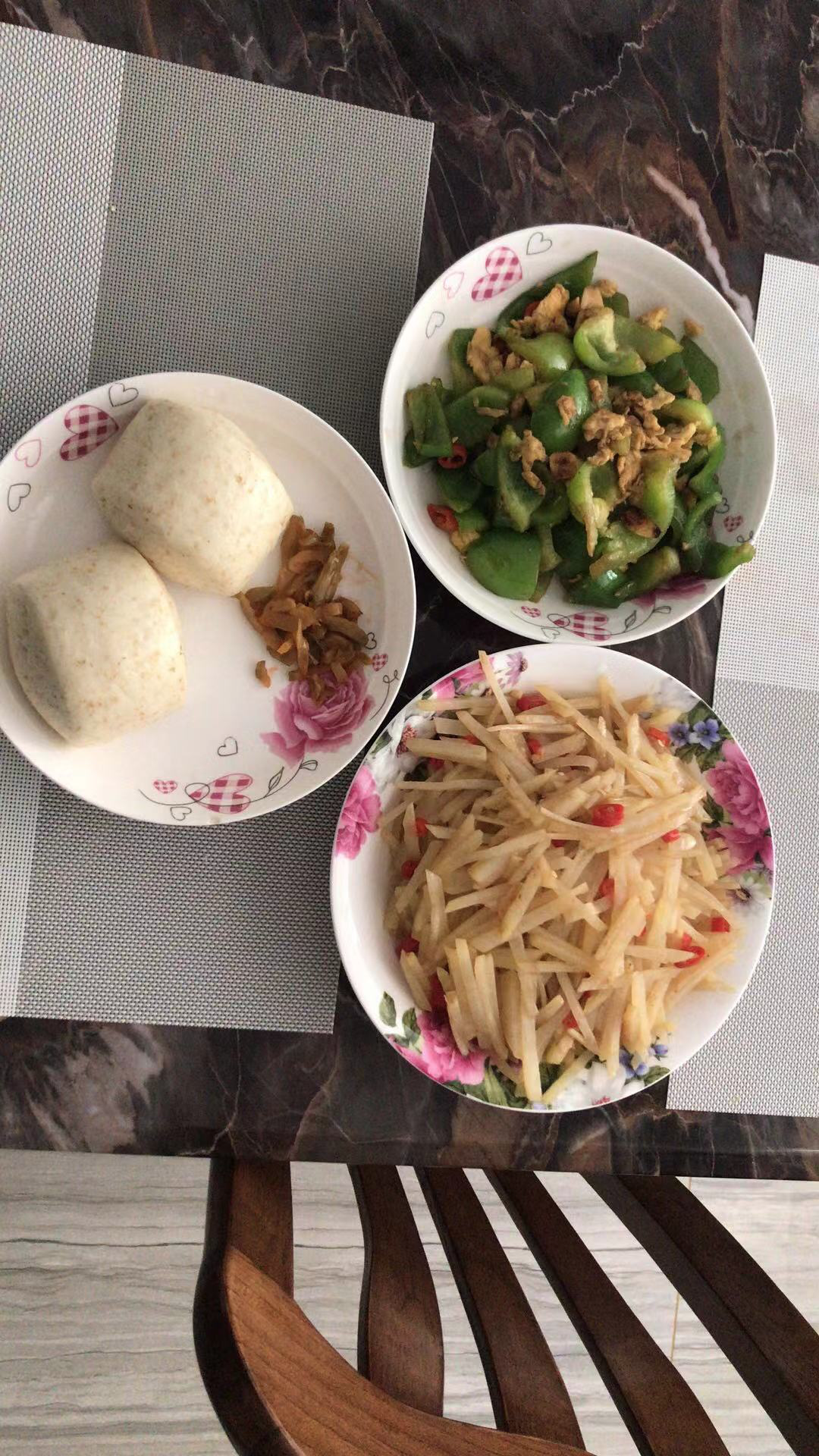 My chinese food made by myselffunny-china (35)in #cn • 7 years ago This is my lunch today. Fried potatoes, Fried pepper eggs, Fried chili lentils, Steamed buns. #life #food #photography #photo