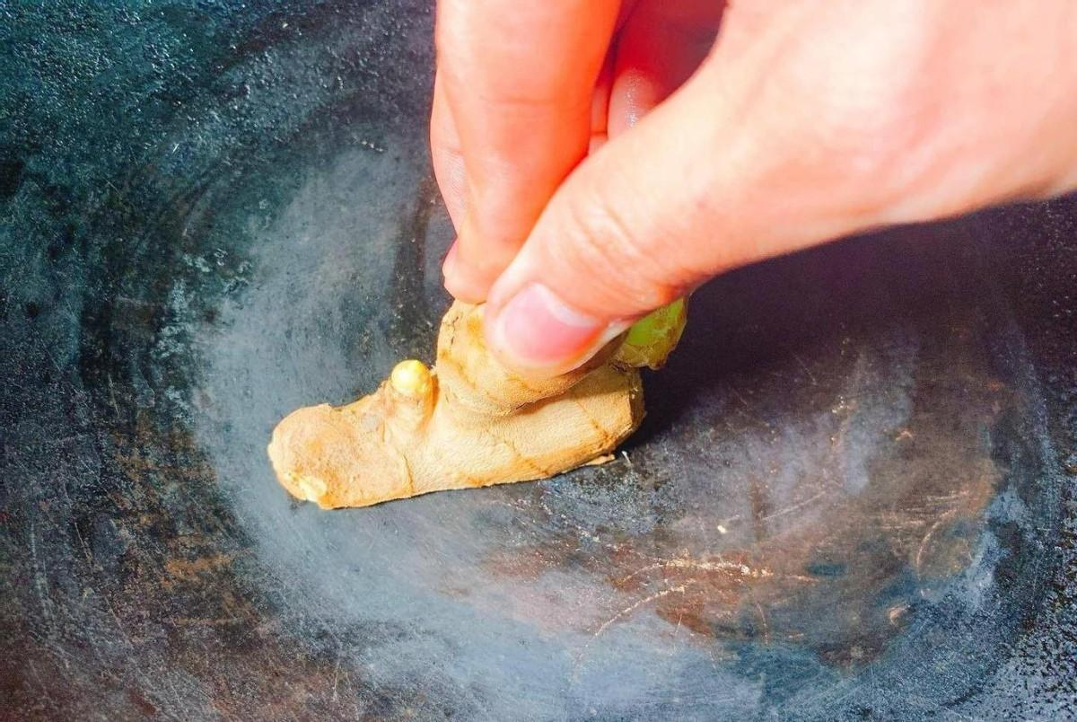我们煎鸡蛋前,准备一块生姜,然后用生姜擦拭锅内部一遍,然后再倒入油加热,这样在煎鸡蛋的时候,鸡蛋就不会出现粘锅,糊锅的情况了。
