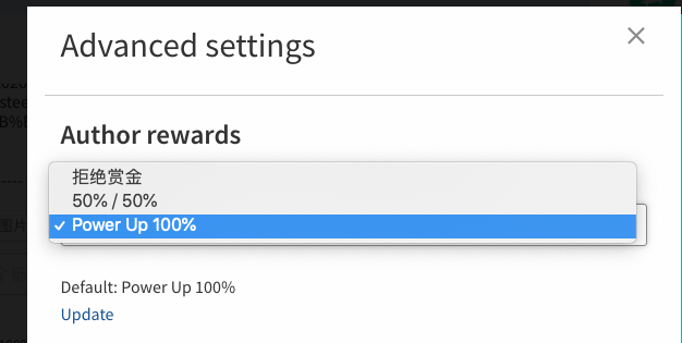 如何让自己的标题右边,出现美丽的 steem 蓝色 logo?!看这-->steemCreated with Sketch.goodauthor (39)in #cn • 6 years ago 如何让自己的标题右边,出现美丽的 steem 蓝色 logo?! 之前一直好奇,有的帖子上有,有的上没有,不知道有什么区别,代表什么意思. 列表和详情页中,都有这个 steem 蓝色 logo,怎么来的呢? 魔法开始了! 将你的奖励设置为100%(Power UP),看图: #dblog #actnearn #cn-curation #cnstm #chinese #steem