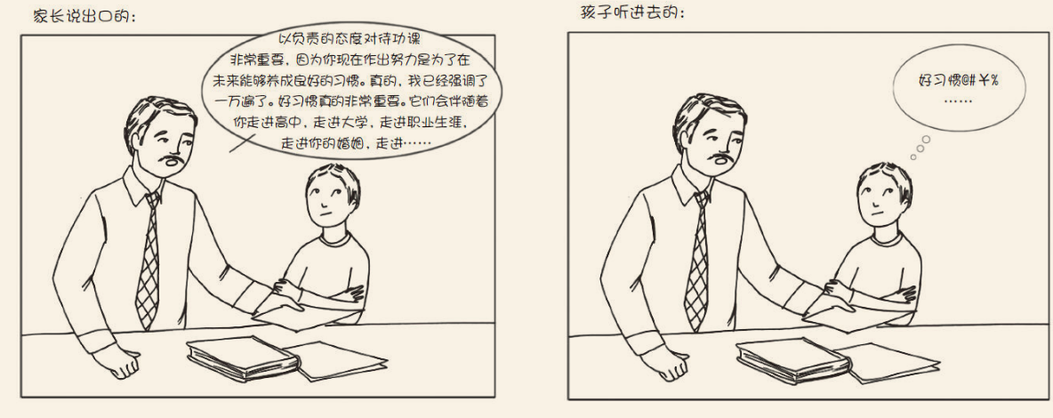 通常来说,孩子正在逆反状态中,所以不愿听进他人的话时,我们只需要闭嘴。如果我们对着不开心的孩子喋喋不休,那多半会起反作用。我们只是在给他们大量的感官冲击,让他们更加难以管控自己。不如多用非言语的方式进行交流吧。抱住他们。捏捏他们的肩膀。给个微笑或者共情的面部表情。点点头。然后,当他们开始平静下来并准备好去倾听时,你就可以进行话语的理性引导,从言辞和理性的层面来处理这一状况啦。