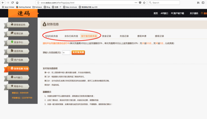3. 需要先充值后使用。 最低充值10元。 支持QQ钱包,京东,支付宝支付。