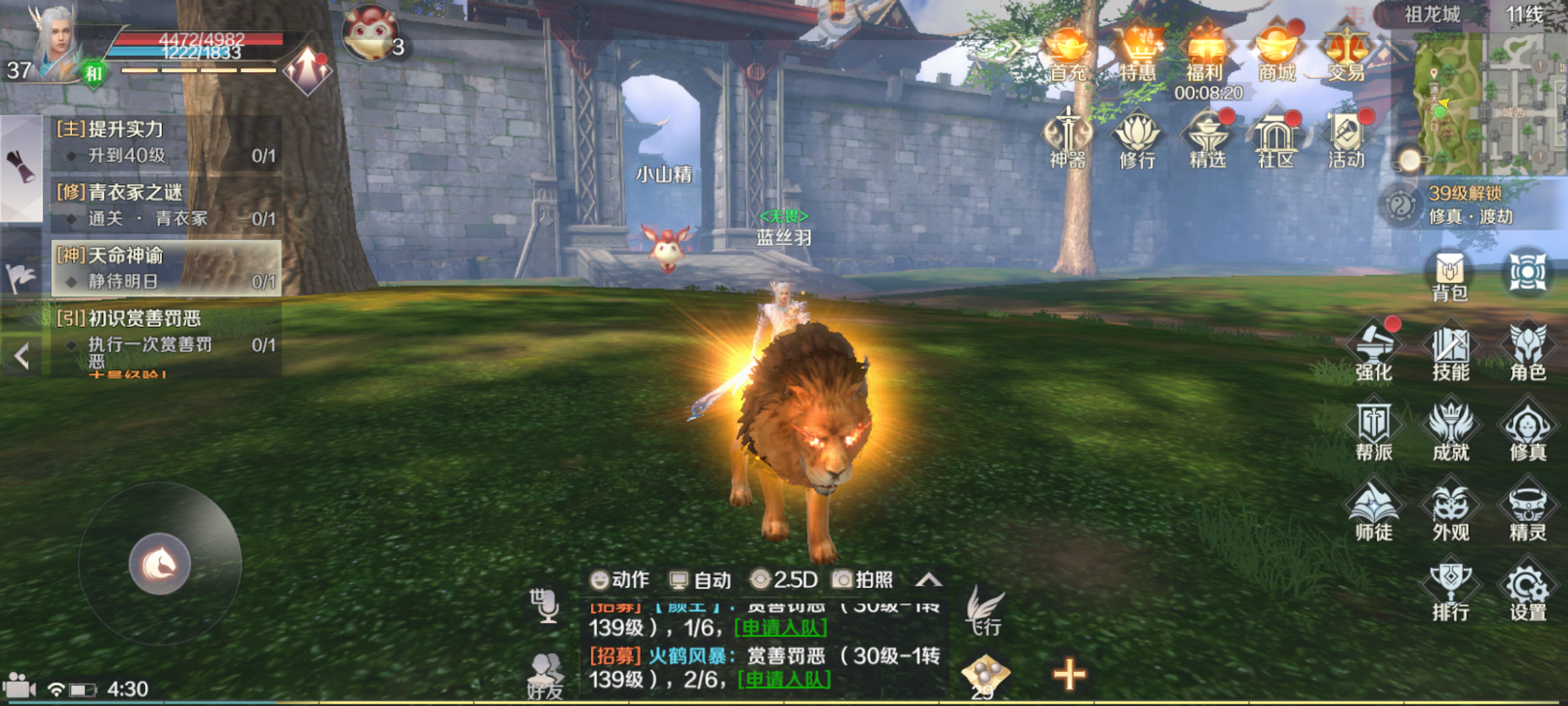 第三天,我获得了一个由官方赠送给每个新手的“限时七日”骑宠【金毛狮王】,像我这个才玩了三天游戏的菜鸟,简直新得不能再新了。