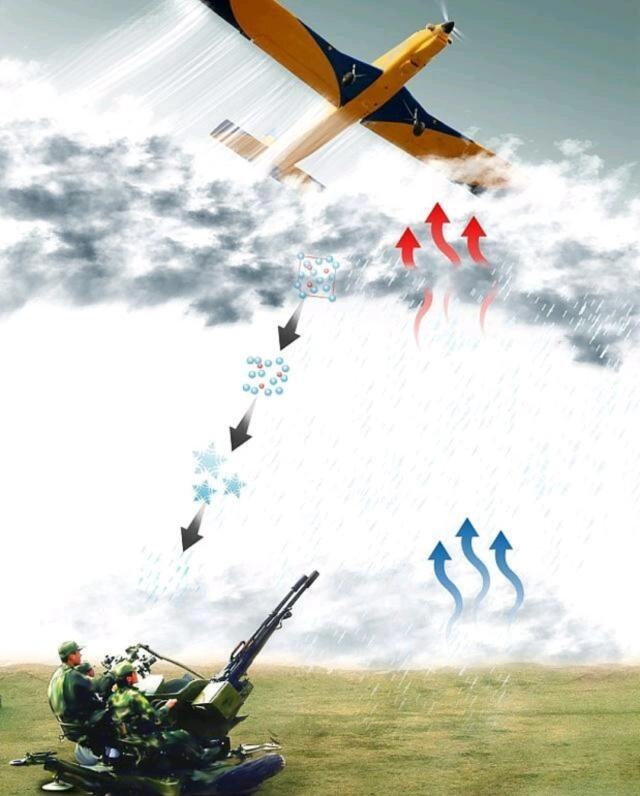 高空引爆:采用高射炮或火箭将碘化银弹射入云层,通过爆炸释放催化剂,加速降水过程。