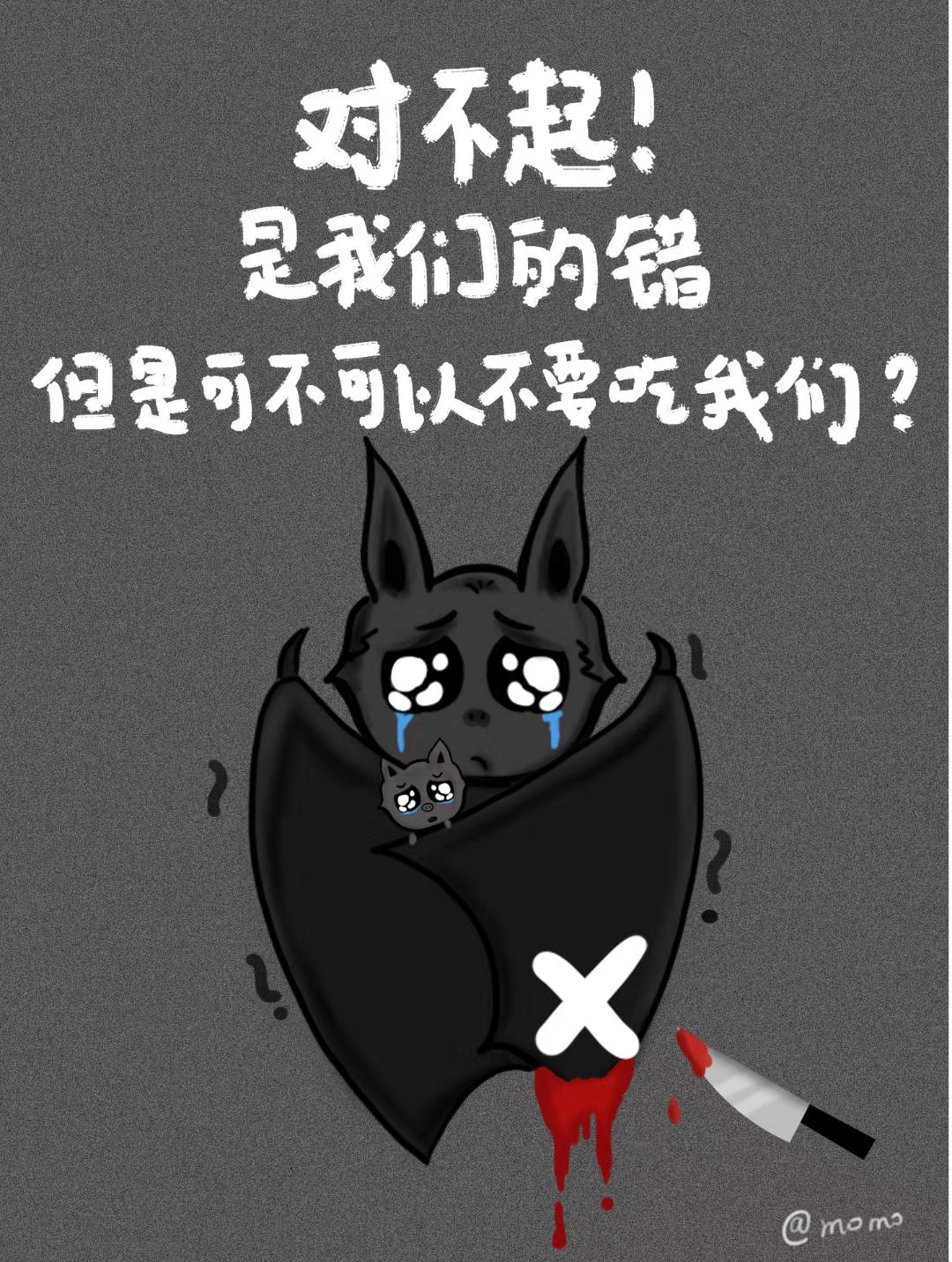 🦇如果蝙蝠会说话:“我是一只蝙蝠🦇我们很毒,但是我们很善良,为了地球和谐,我们总是独来独往,宁愿长得丑了一点,宁愿做黑夜孤独的翼手,也不想祸害谁,这是我们历代恪守的道德底线,可让我们出乎意料的是,可为了吃,人类什么都做的出来,在人类贪婪的口中我们失去了无数同伴,还有邻居,也传来了一次次噩耗,2003年的sars病毒,2014年的埃博拉病毒,2018年的mers病毒,还有眼下的2019年新型冠状病毒,这一切,让我们无比忧伤和委屈,蝙蝠被上帝创造的目的,是在森林中散播种子,传授花粉,维护了地球3分之一的森林,在城市中我们每晚能消灭1万4千公斤昆虫,甚至为了激发科学家发明飞机的雷达,这才是上帝赋予我们的光荣使命,请人类好好爱护我们,及其他的野生动物,因为,这也是上帝赋予你们的使命”