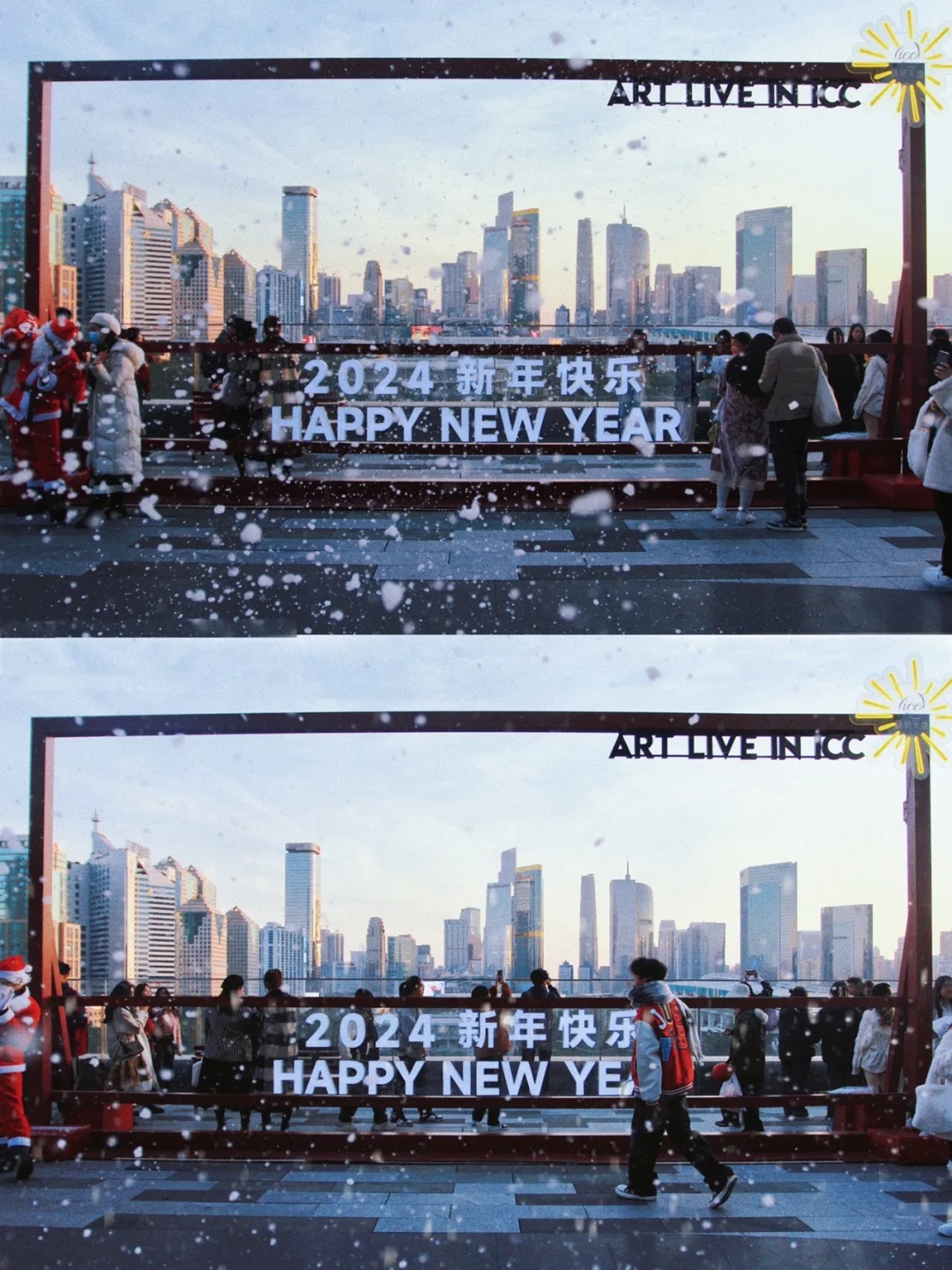 天台➕巨幕2024电影取景框➕CBD繁华夜景➕绝美夕阳➕浪漫【雪景】,跨年的浪漫buff简直叠满了!