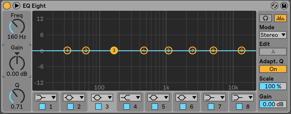 Ableton Live 里面最常用的 EQ 是 EQ Three 和 EQ Eight。