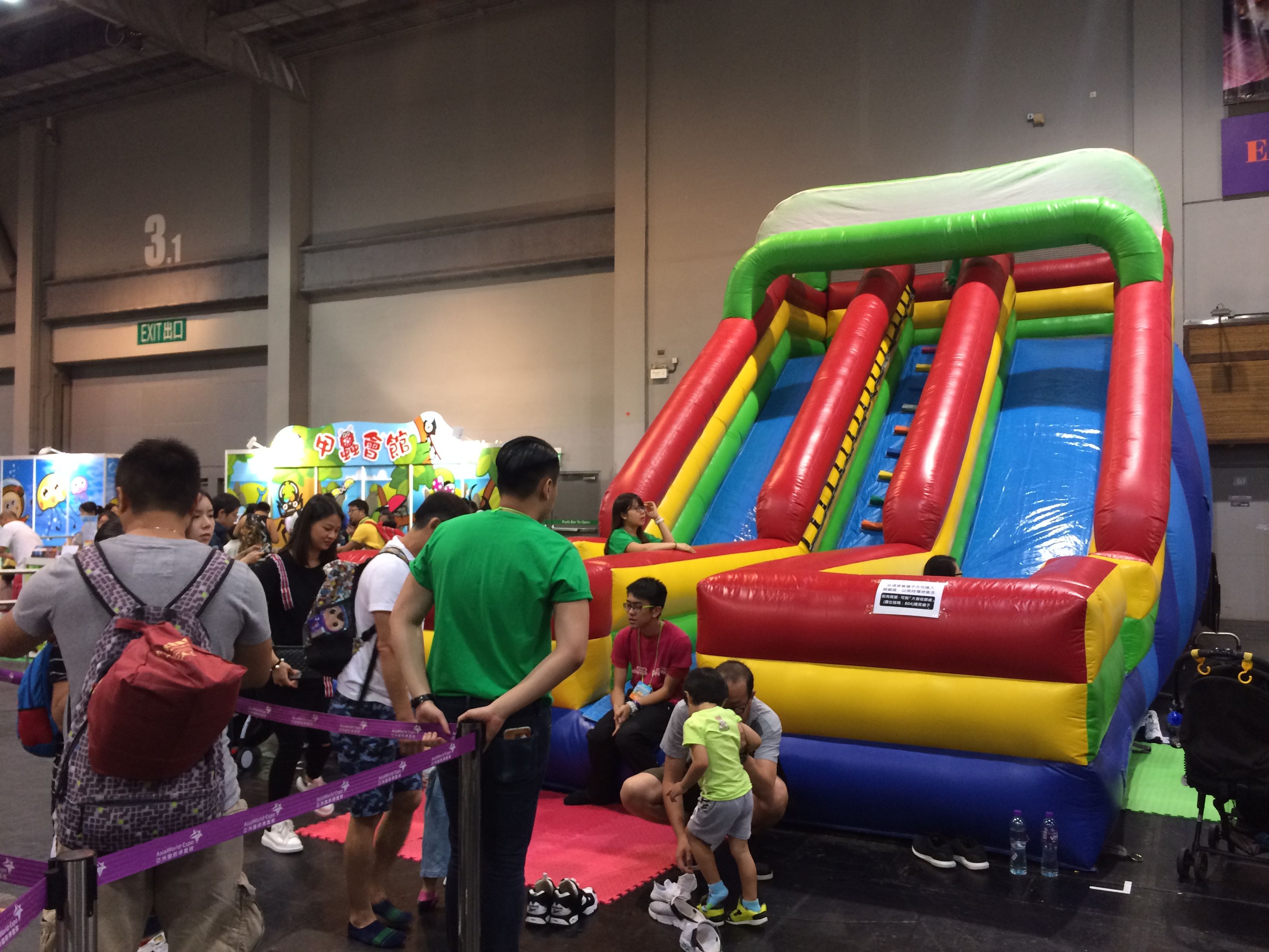 第一類就是充氣彈床類。主要是給3至11歲的小朋友當做遊樂埸去玩。有充氣的攀爬牆、滑梯、彈床之類的。我看上去小朋友都特喜歡玩這些,不停的跑著跳著,根本不想離開。於安全上我覺得主辦單位是挺用心的,因為在每個遊戲埸地上都起碼安排了3位工作人員去看著小朋友。而且每次只讓幾個子朋友進去玩而已。雖然這增長了排隊的時間,但是安全永遠是最重要的,這個我十分欣賞。