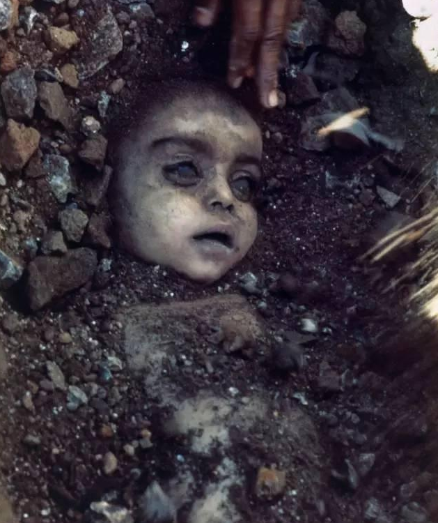 1984年12月3日,美国在印度中部拥有70万人口的博帕尔市开办的联合碳化物公司的一家农药厂,发生了一起震惊世界的毒气泄漏事故。印度籍摄影记者帕布劳·巴塞洛缪在这一严重工业灾难中拍摄了许多照片,可是他自认为只有这张掩埋中毒致死的孩子的照片,才称得上是博帕尔大灾难的象征。