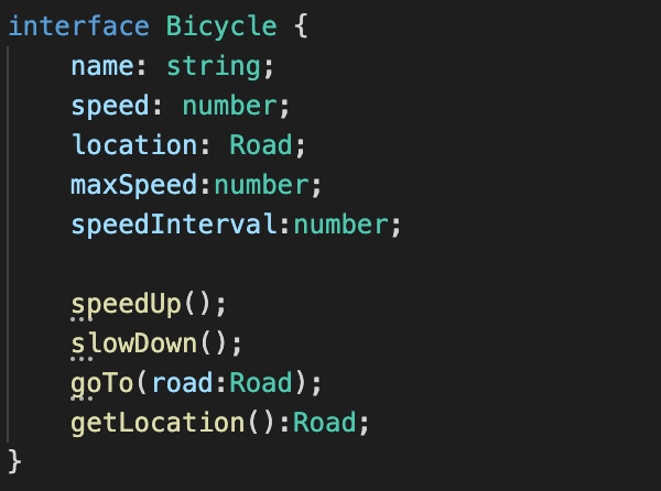 我們使用介面規定下單車應該有什麼特性和能做什麼, 但當中的邏輯就在往後創造一個class時實作。