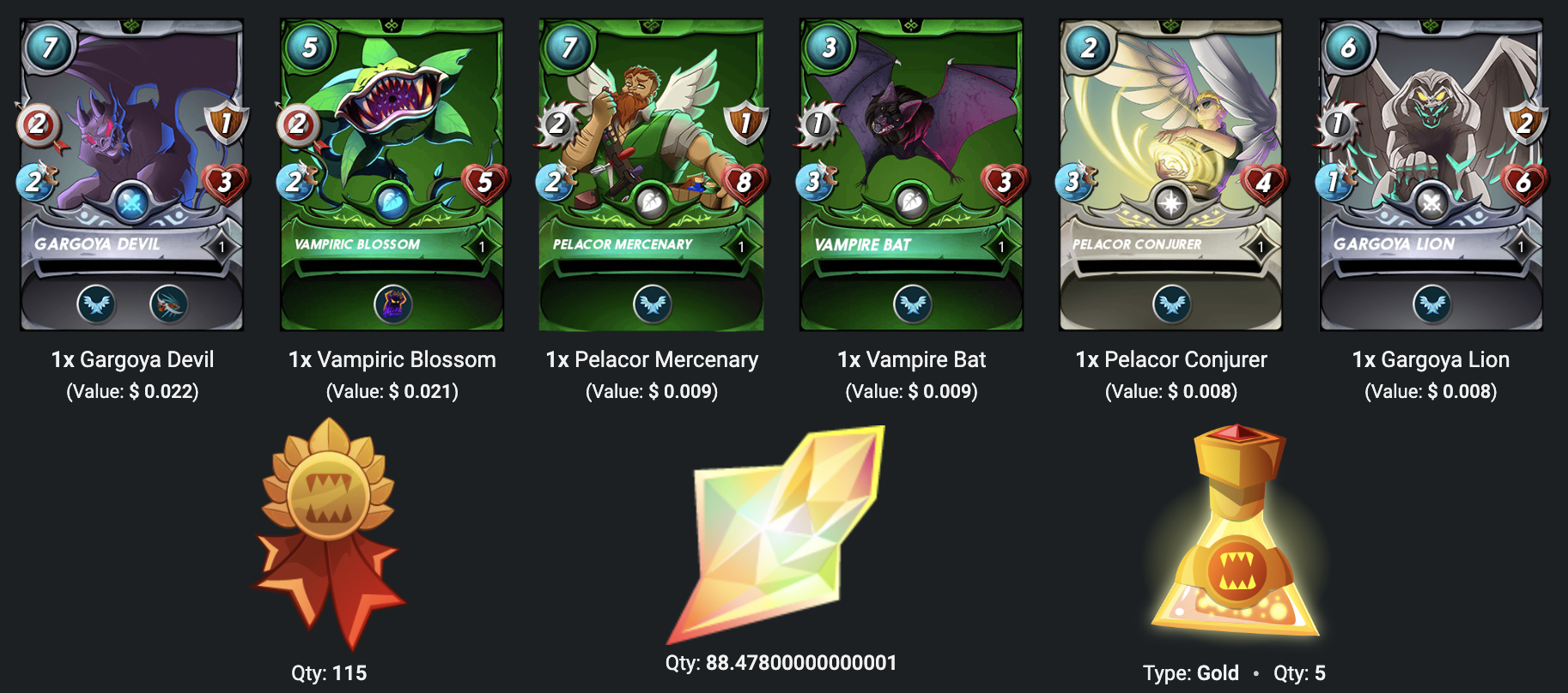 <Splinterlands>系列—每日任務獎勵卡5/9/2022kirato (70)in #cn • 4 years ago 這是5號的結果。 今天結果很一般。 若還沒有玩遊戲,可使用小弟的連結去註冊: https://steemmonsters.com?ref=kirato #steemmonsters