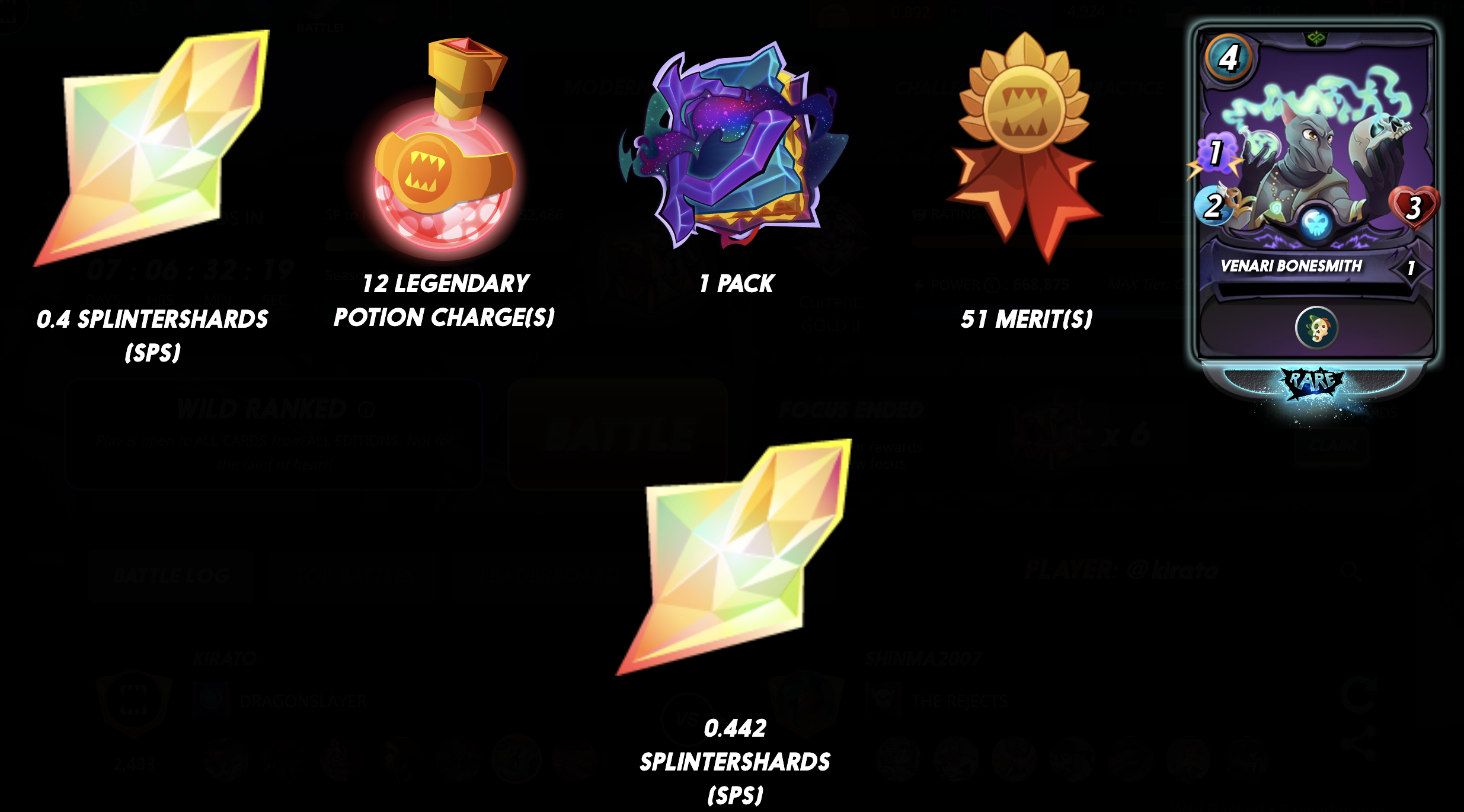 <Splinterlands>系列—每日任務獎勵卡8/9/2022kirato (70)in #cn • 4 years ago 這是8號的結果。 今天結果很一般。 若還沒有玩遊戲,可使用小弟的連結去註冊: https://steemmonsters.com?ref=kirato #steemmonsters
