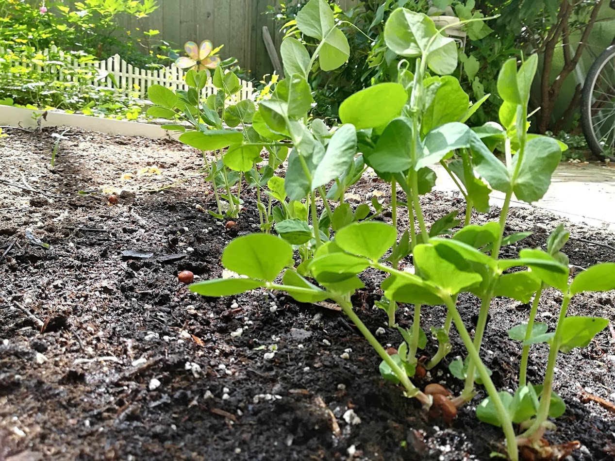 去年房东送我许多种子,因为那时已经在院子里种了其他的蔬菜就一直搁着,最近突然想起来就在有机土的那块地里随便撒了几颗豆子的种子就跑去旅行了,结果旅行回来才4天就发芽🌱长出来了。