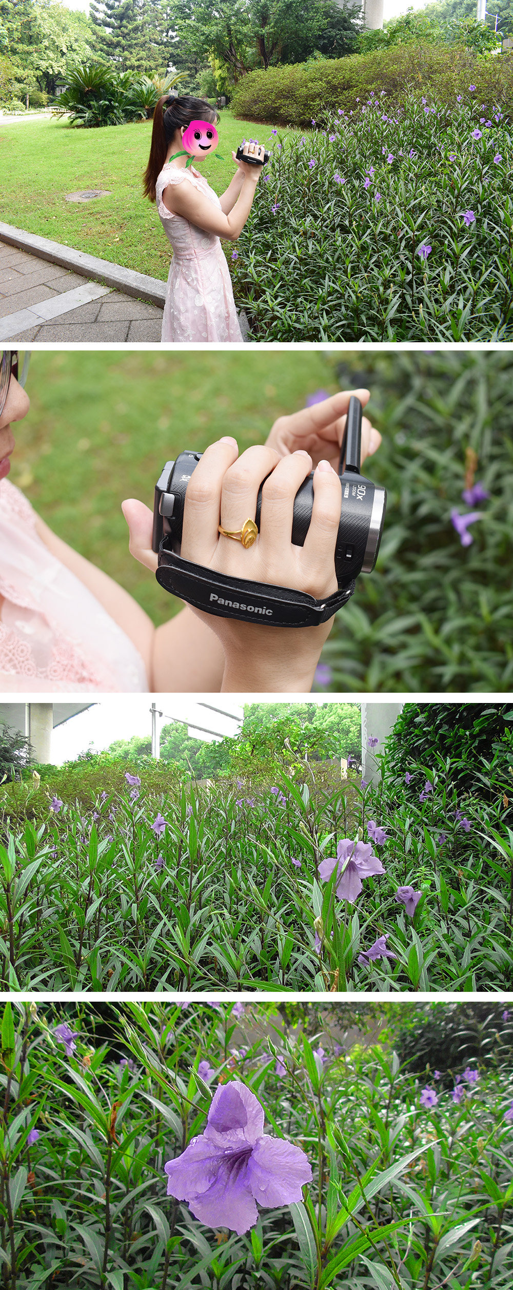 DV的作用就是用來拍攝視頻和照片了,先來看看這款攝像機拍攝照片的功能。今天早上我到公園拍攝的圖片,昨晚剛下過一場大雨,空氣非常的新鮮,我看到這些花草都非常的嬌豔欲滴,於是就想把它拍下來。這款DV有一個黏布綁帶,可以自由調節,套在手上單手操作DV也不會掉了,下麵的花草都是用DV的實拍圖,影像尺寸為4224x2376,畫面比例為16:9,看過去拍攝的效果還行吧,不過有了手機,DV拍照片就有點顯得雞肋了。