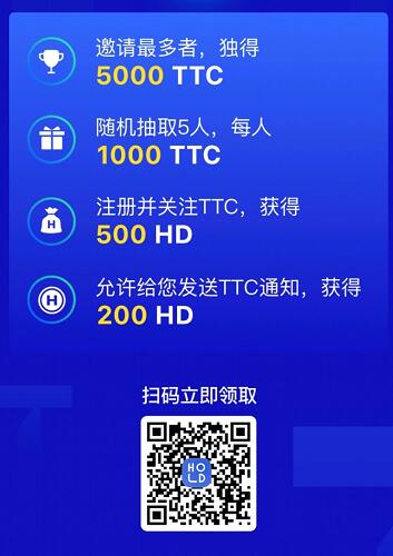 HOLD:瓜分10万枚TTC,注册送500HD,TTC市价0.09元/个