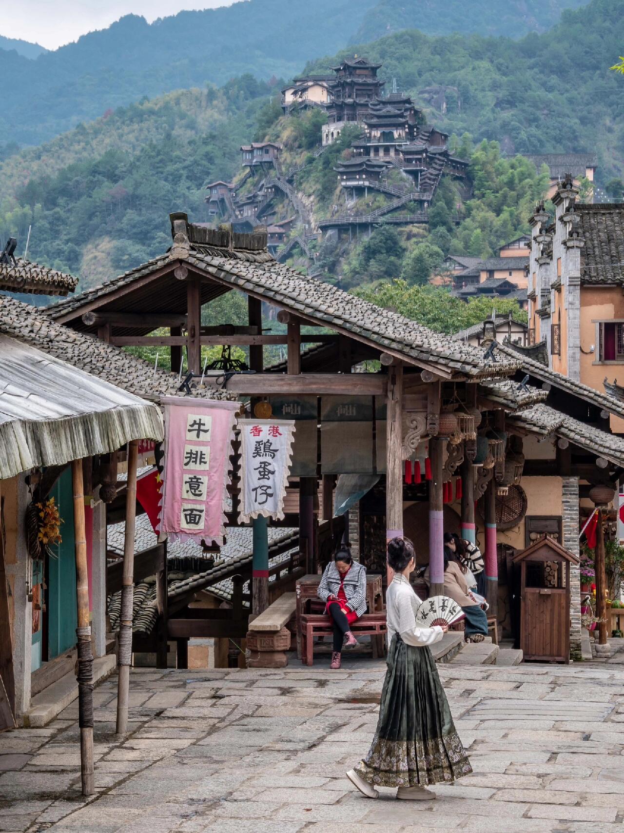 站在栈道或是观景台便可以俯瞰这座山谷里的神仙村落,不仅出片而且视野非常开阔。